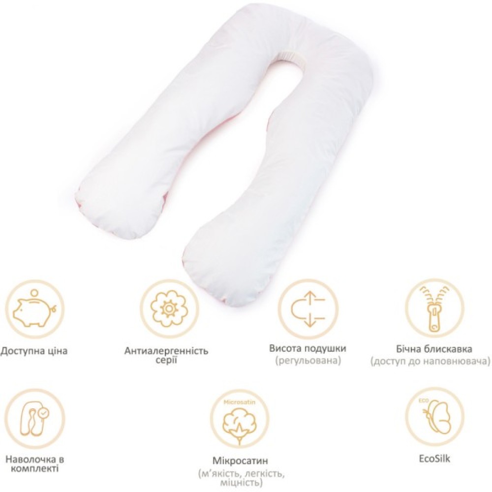 Багатофункціональна подушка U-подібної форми. Допоможе розслабитися та зняти напругу з м'язів, зменшує навантаження на хребет, частково звільняє руки. Підходить для відпочинку та застосування вже у період вагітності.