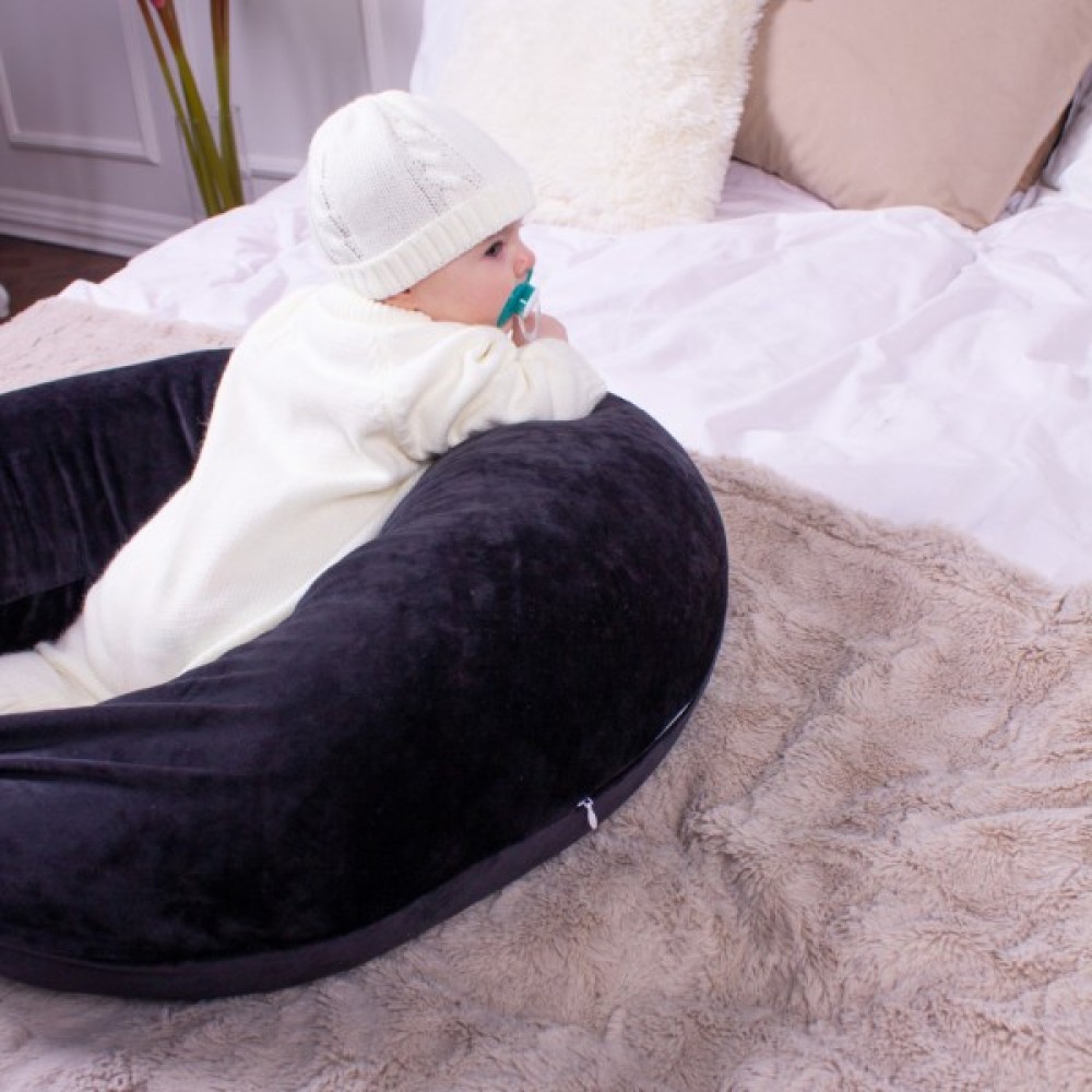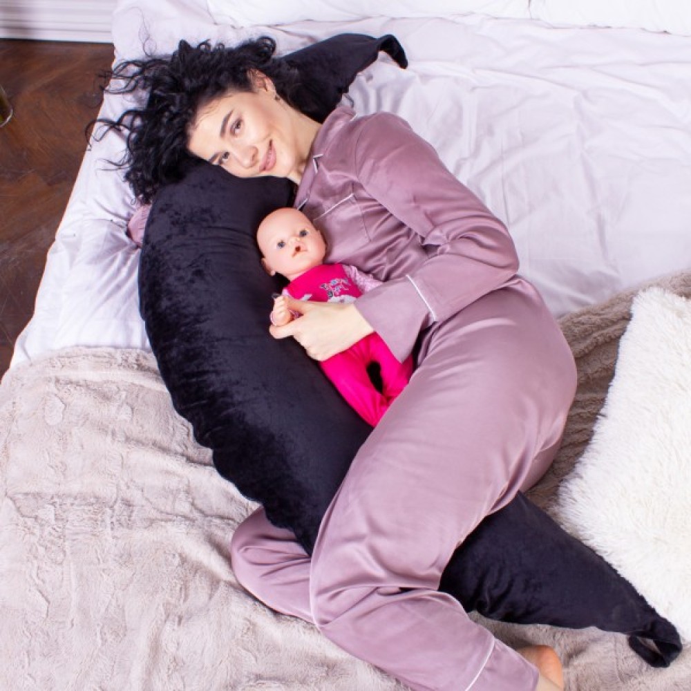 Подушка MirSon для вагітних та годування №8305 Velvet Line 28-0007 Black Велюр 30х170х20 см (2200006200307)