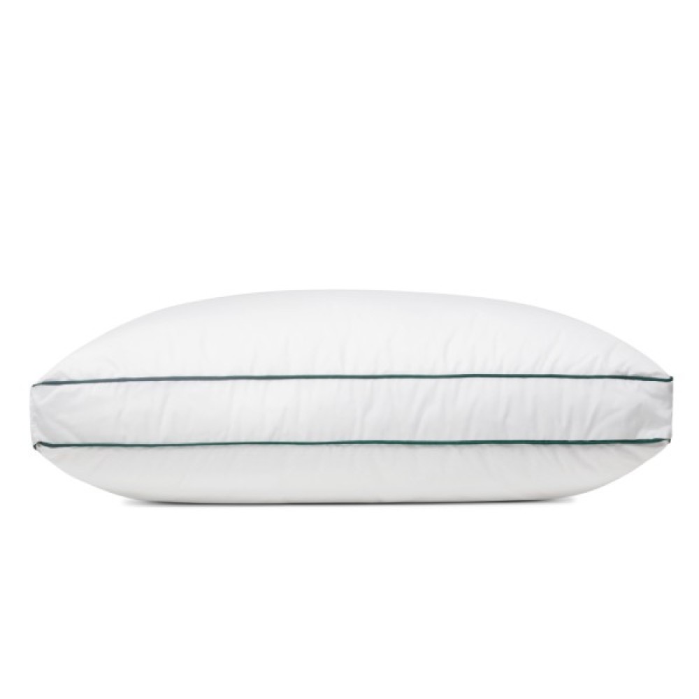 Наповнювач подушки — добірний гусячий пух високої якості, який проходить ретельну очистку, стерилізацію та сортування. Завдяки цьому він має природну легкість, чудову повітропроникність і теплоізоляційні властивості. Пух рівномірно розподілений усередині подушки, що гарантує стабільну форму й м’якість навіть після тривалого використання.