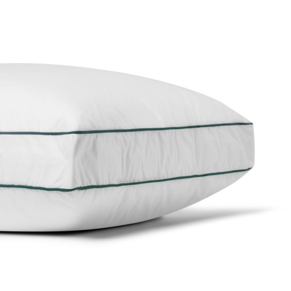 Наповнювач подушки — натуральний гусячий пух високої якості, який проходить багаторівневу очистку та стерилізацію. Завдяки цьому він залишається легким, повітропроникним і гіпоалергенним. Пух рівномірно розподілений у середній підушки, не збивається та зберігає форму протягом тривалого часу. Середня висота моделі робить її універсальною — вона підійде як для сну на боці, так і на спині.