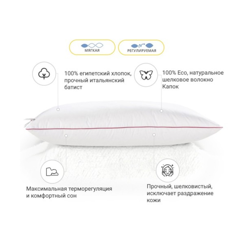 ідеально підтримує в правильному положенні вашу голову впродовж усієї ночі, не виштовхуючи та не провалюючи ваш плечовий суглоб і голову. Завдяки ідеальному розподілу високоякісного наповнювача подушка має профілактичний характер, робить позитивний вплив на весь організм.