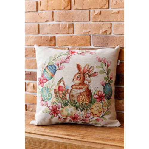 Подушка, Прованс, декоративна, гобеленова, Зайчата, віночку, Злагода, 45х45, см, 034260
