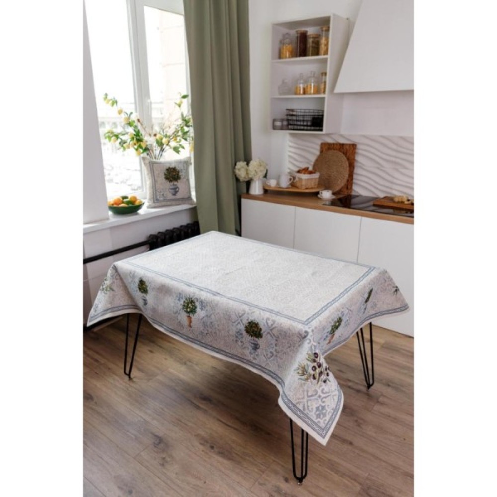 Скатертина на стіл з високоякісної гобеленової іспанської тканини. Це стильний подарунок сім'ї, друзям, родичам та колегам на будь-яку подію. Також це чудове доповнення до серветок, фартухів, рукавичок, прихваток, доріжок, наволочок та подушок з гобеленової колекції Наполі. Склад тканини: 34% бавовна, 63% поліестер, 3% акрил (гобелен). Виробництво: Україна.