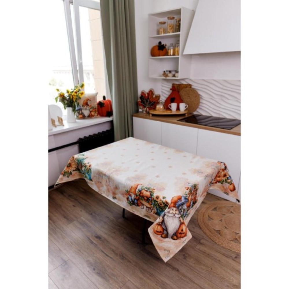 Скатертина на стіл з високоякісної гобеленової іспанської тканини. Це стильний подарунок сім'ї, друзям, родичам та коллегам до свят осені та HALLOWEEN. Також це чудове доповнення до кошику, серветок, фартухів, рукавичок, прихваток, доріжок, наволочок та подушок з гобеленової колекції Гарбузові гноми Мальовничий принт скатертини допоможе Вам додати затишку та яскравих фарб до настрою та інтер'єру.Виробництво: Україна.
