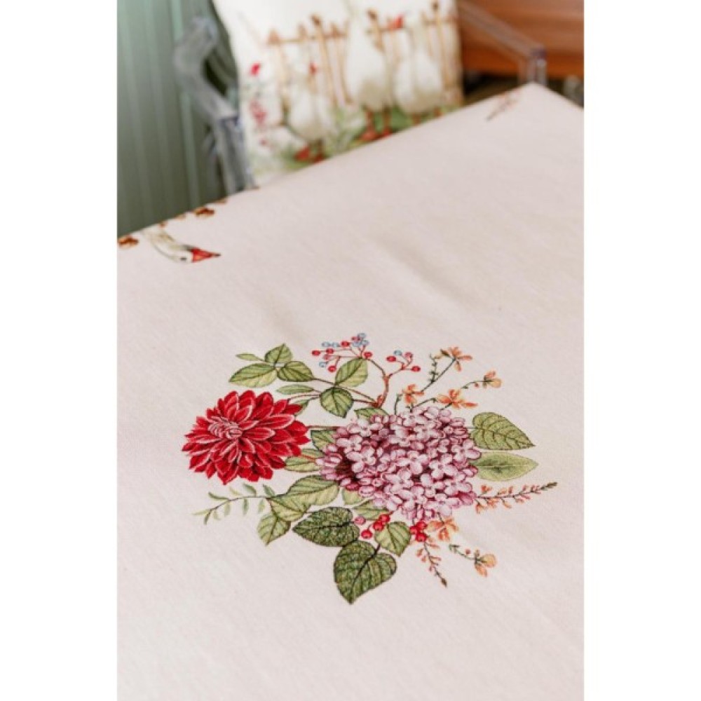 Скатертина на стіл із високоякісної іспанської тканини. Це стильний подарунок сім'ї, друзям, родичам та колегам на честь будь якого свята. Також це прекрасне доповнення до серветок, доріжок, наволочок та подушок з гобеленової колекції Гуси.