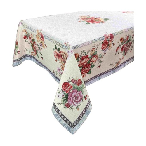 Гобеленова скатертина прикрасить вітальню або кухню. Забарвлення чудово гармоніюватиме зі світлими тонами меблів і текстилю в інтер'єрі. Іспанська тканина