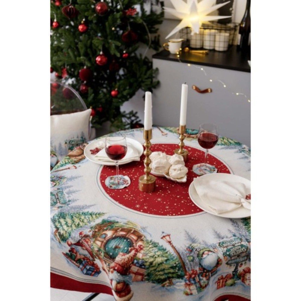 Скатертина, Прованс, гобеленова, Різдвяне, багаття, Dх140, см, 037410