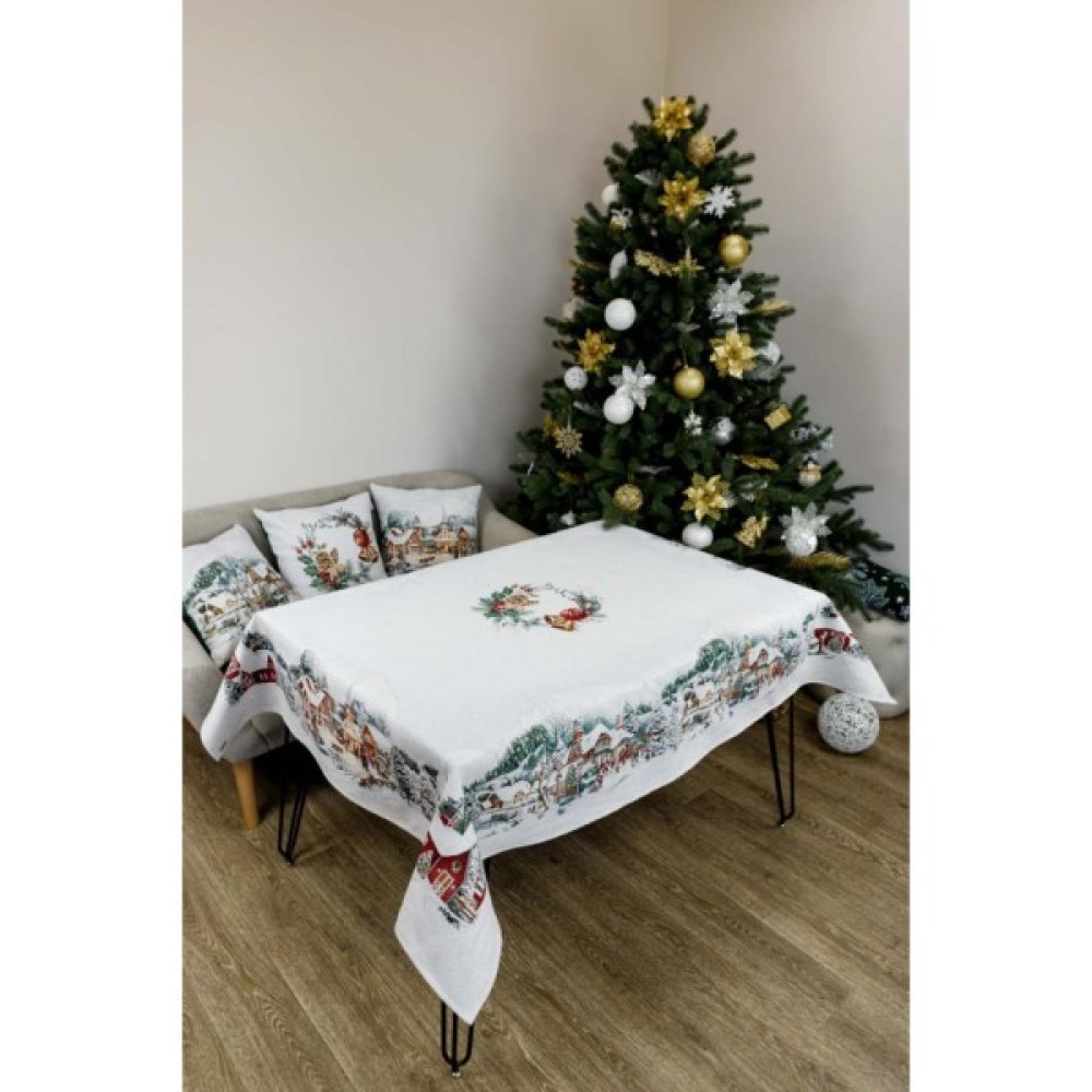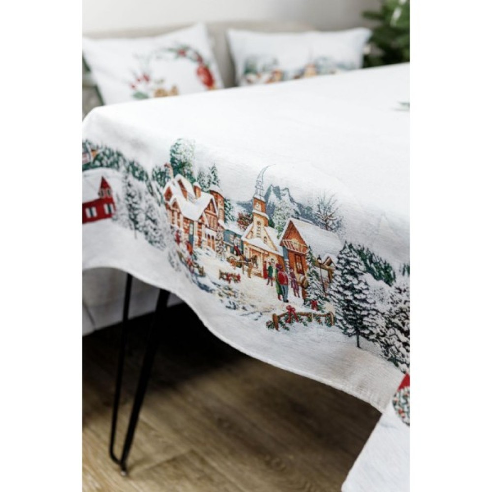Скатертина Прованс гобеленова з велюром Зимове місто 135х180 см (4823093450462)