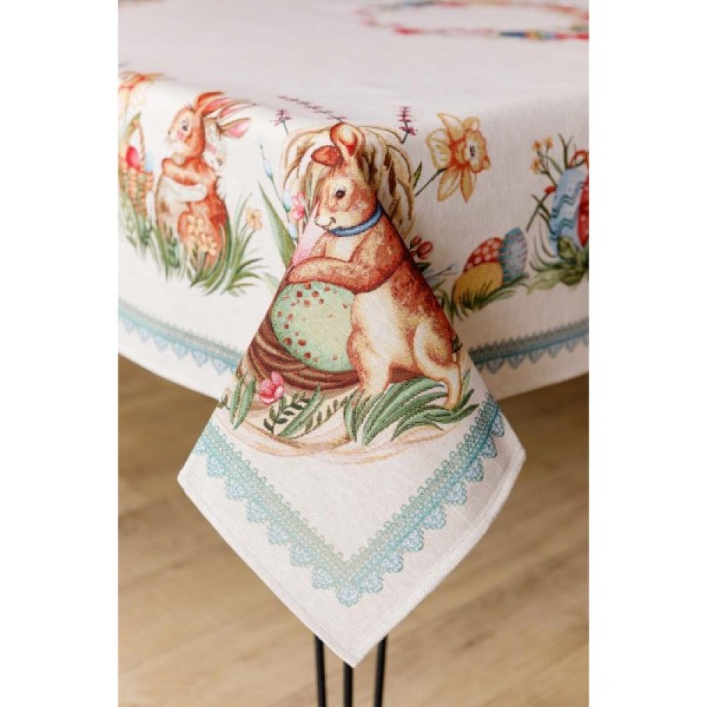 Скатертина на стіл з натуральної іспанської тканини. Це стильний подарунок сім'ї, друзям, родичам та колегам на честь світлого свята Великодня