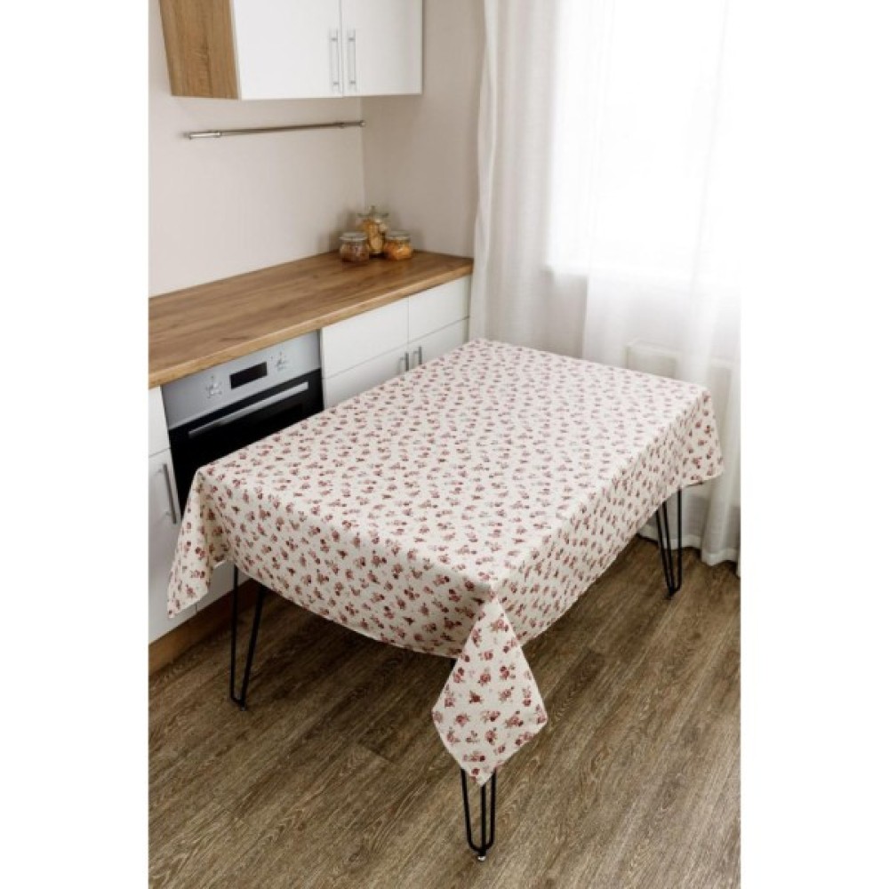 Скатертина Прованс непромокаюча Simfoni Червоні трояндочки на натюрель 120х136 см (033535)