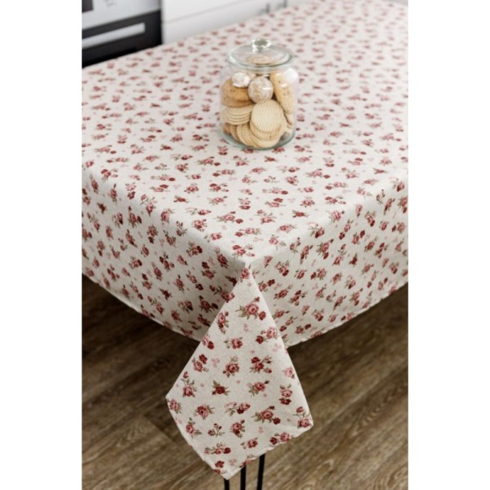 Скатертина, Прованс, непромокаюча, Simfoni, Червоні, трояндочки, натюрель, 120х136, см, 033535