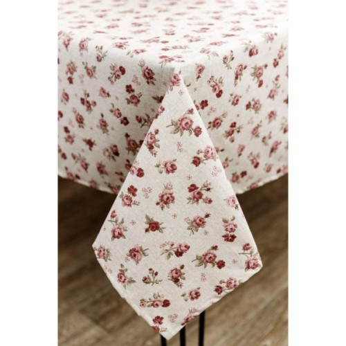 Скатертина Прованс непромокаюча Simfoni Червоні трояндочки на натюрель 220х136 см (033591)