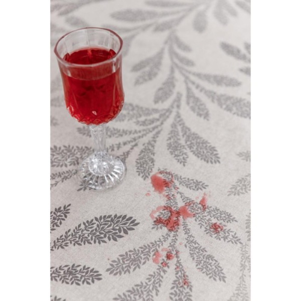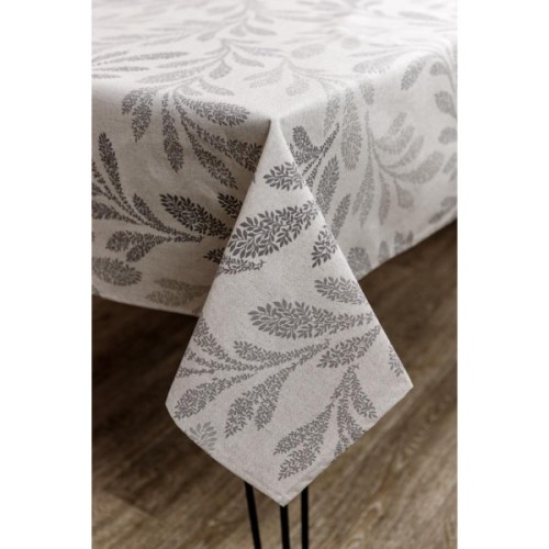 Скатертина водостійка з акриловим покриттям. Водовідштовхувальні скатертини - це практичні аксесуари, які підходять не тільки для прикраси, але і для захисту столу від зовнішніх впливів. Завдяки акриловому покриттю, яке не дозволяє волозі вбратися в тканину, будь-яку розлиту рідину або забруднення легко прибрати за допомогою губки. Така скатертина позбавить господиню від затирання плям та виду неідеального сервірування святкового столу. Замовити скатертину водовідштовхувальну Simfoni Сіре листя на натюрель. Склад тканини: 100% бавовна з акриловим покриттям. Переваги скатертини: -виглядає як бавовна; -водонепроникна; -стійка до будь-яких забруднень; -очищається легко вологою губкою; -можна прати у теплій воді; -можна прасувати з виворітного боку.