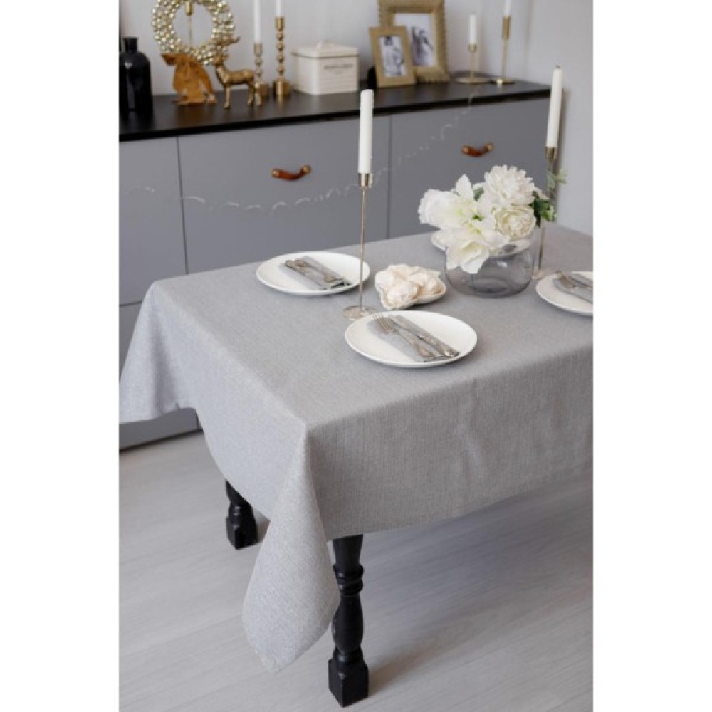 Ошатна скатертина прикрасить вітальню або їдальню. Тканина щільна з ниткою люрексу. Забарвлення буде добре гармоніювати зі світлими і темними тонами меблів в інтер'єрі.