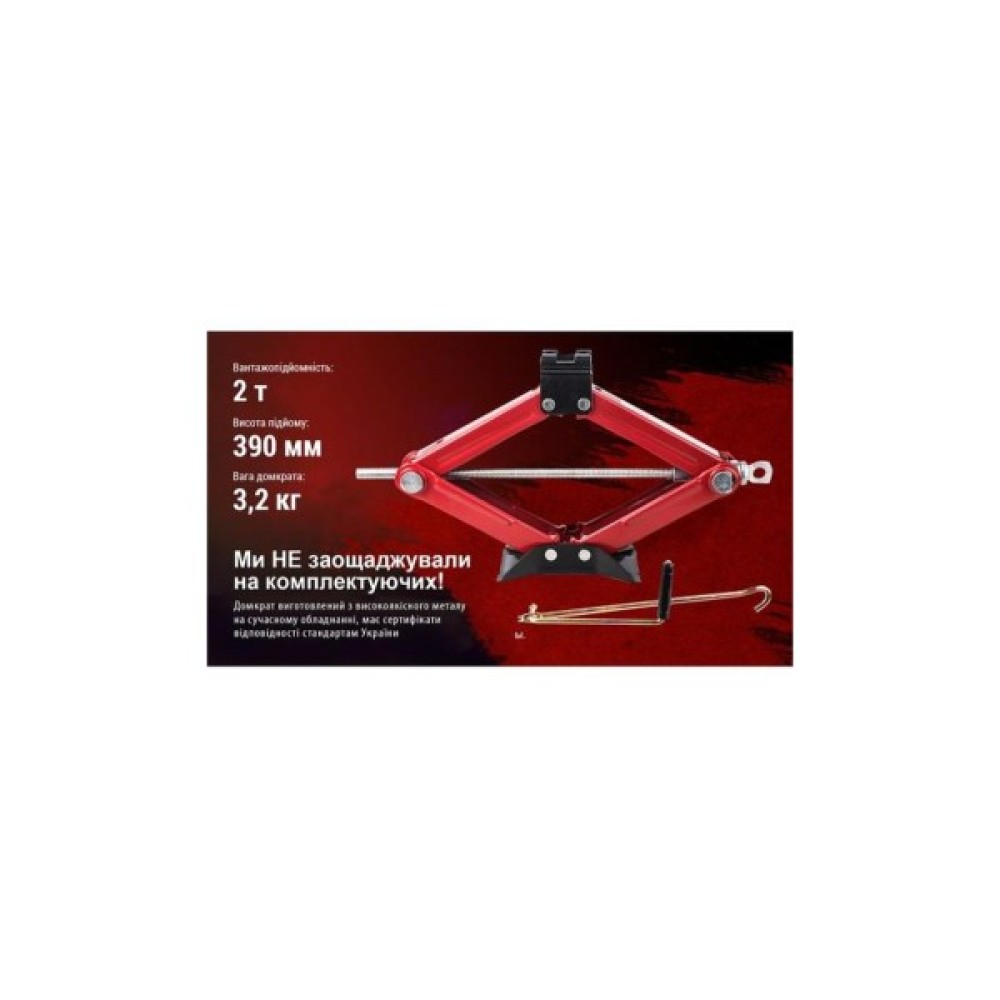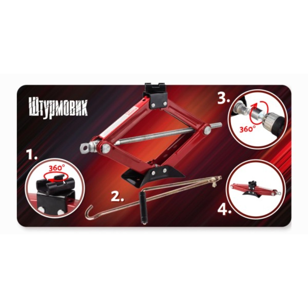 Домкрат механічний ромбоподібний Штурмовик 2 т — інструмент професійного класу, призначений для підйому вантажів і різновидів автомобільного транспорту. Робота гвинтового ромбоподібного домкрата Штурмовик 2 т дуже проста, полягає вона в тому, що під час обертання ручки відбувається стискання або розтискання чотирьох важелів, закріплених за допомогою шарнірів, завдяки цьому й відбувається підйом або опускання вантажу.