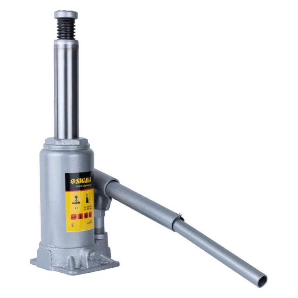 Домкрат гідравлічний пляшковий 5 т H 185-355 мм Standard Sigma (6106051) вирізняється простотою конструкції і зручністю в експлуатації, що розширює сферу його застосування й дає змогу ефективно виконувати роботи будь-якої складності. Його активно використовують для монтажу та демонтажу в будь-якій галузі — машинобудуванні, будівництві тощо. Він придатний для ремонту автомобілів, колісних пар залізничних вагонів, а також як силовий вузол пресів, трубозгинальників, труборізів й інших таких інструментів. Під час роботи з домкратом рекомендується використовувати страхувальні підставки для надійної фіксації вантажу, а також стоянкові башмаки.