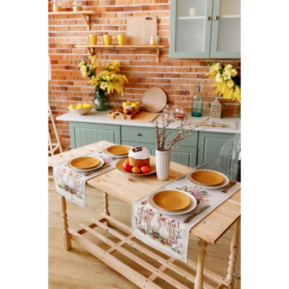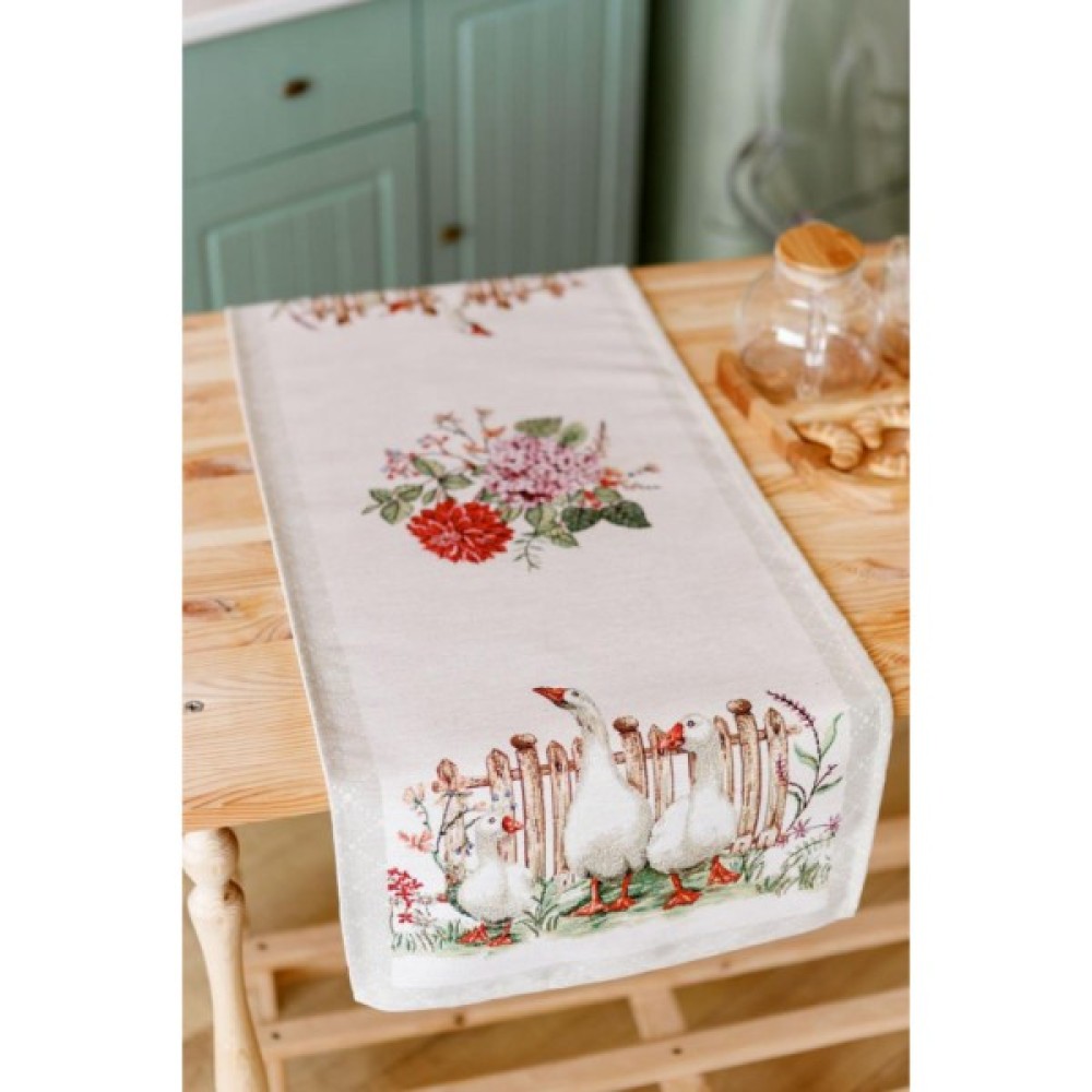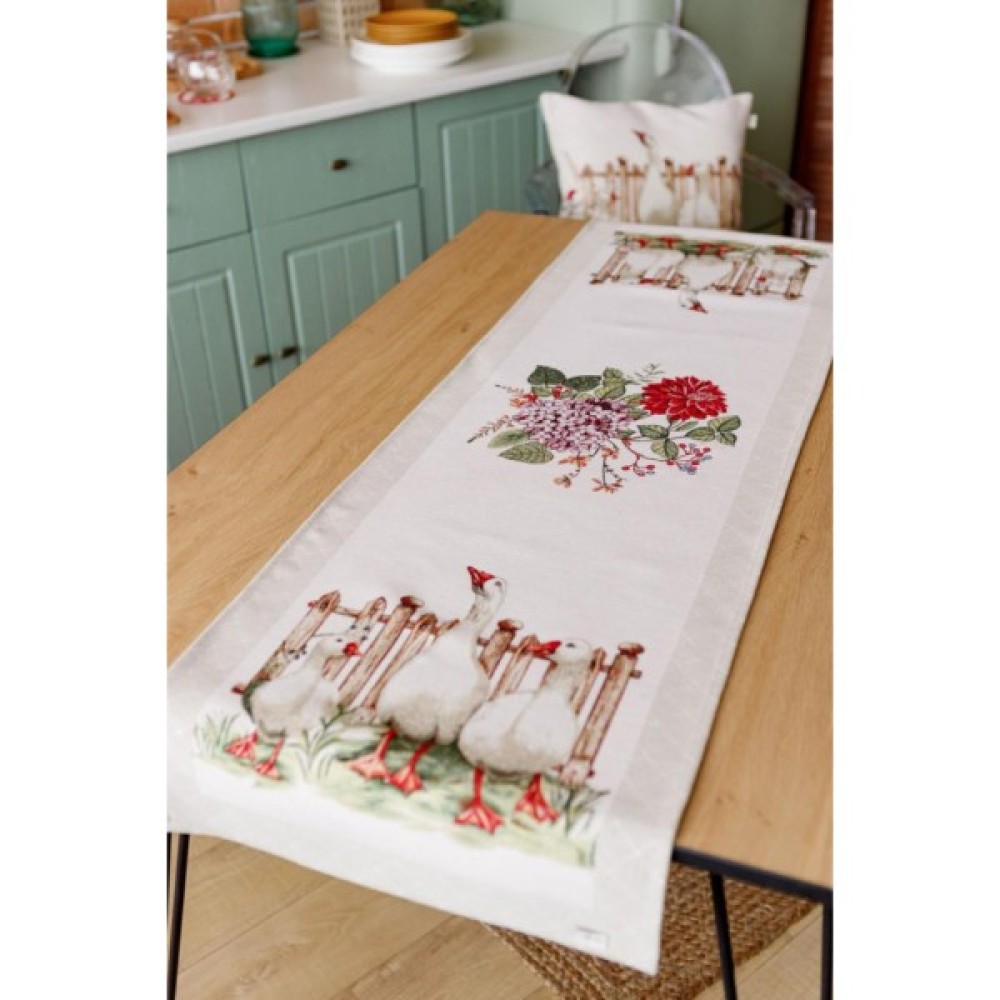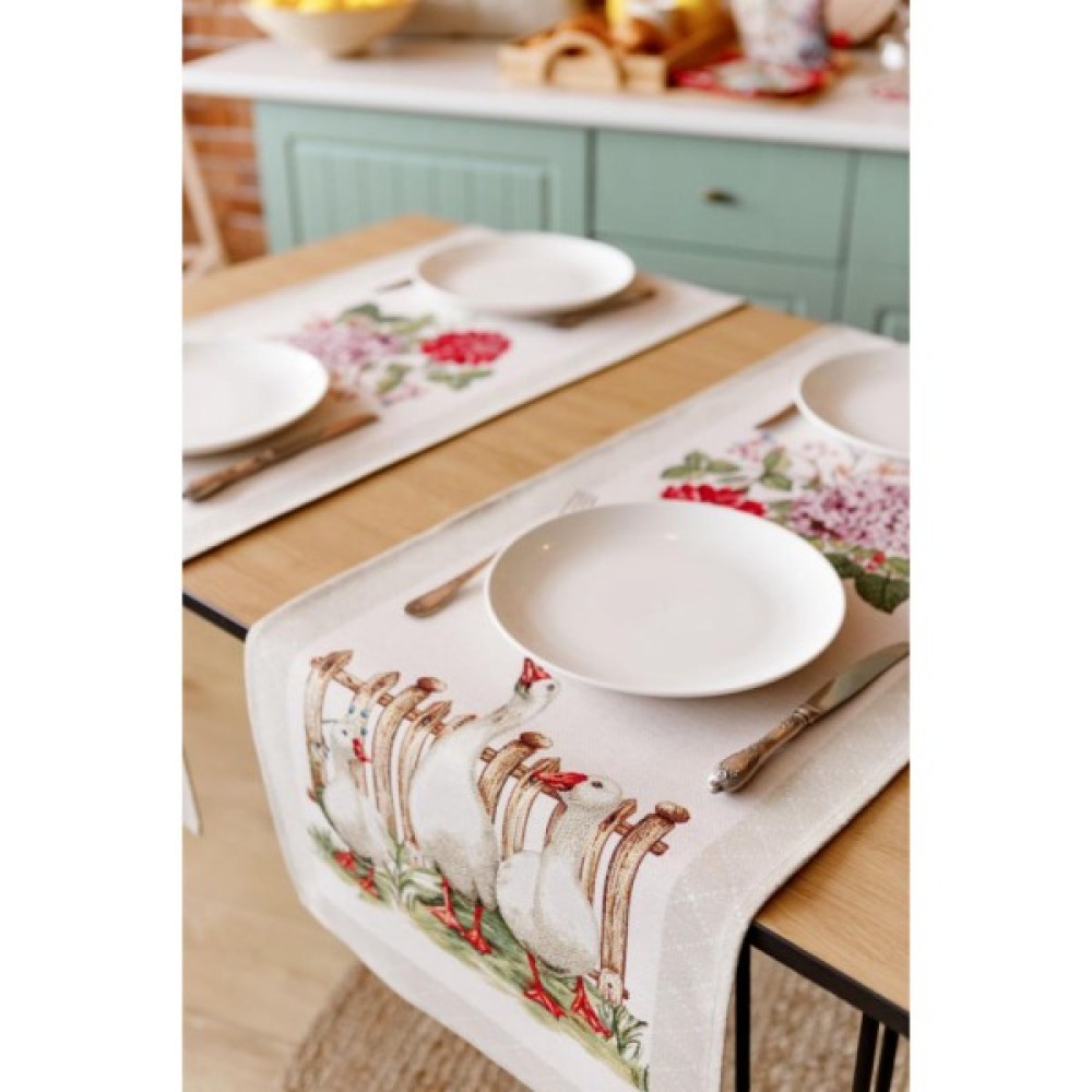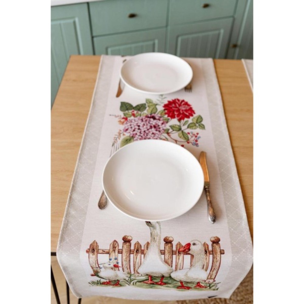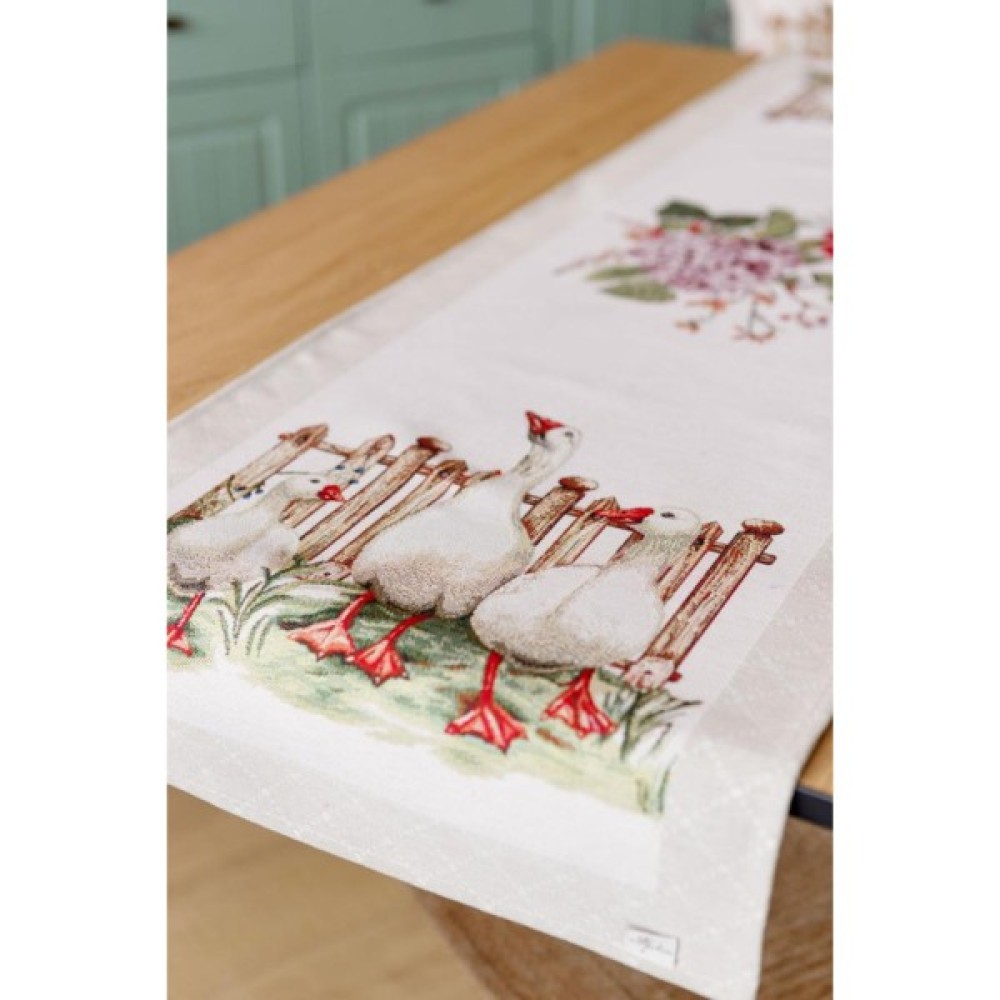 Доріжка на стіл з високоякісної гобеленової іспанської тканини. Це стильний подарунок сім'ї, друзям, родичам та колегам Також це прекрасне доповнення до скатертини, серветок, наволочок та подушок з весняної колекції Гуси.