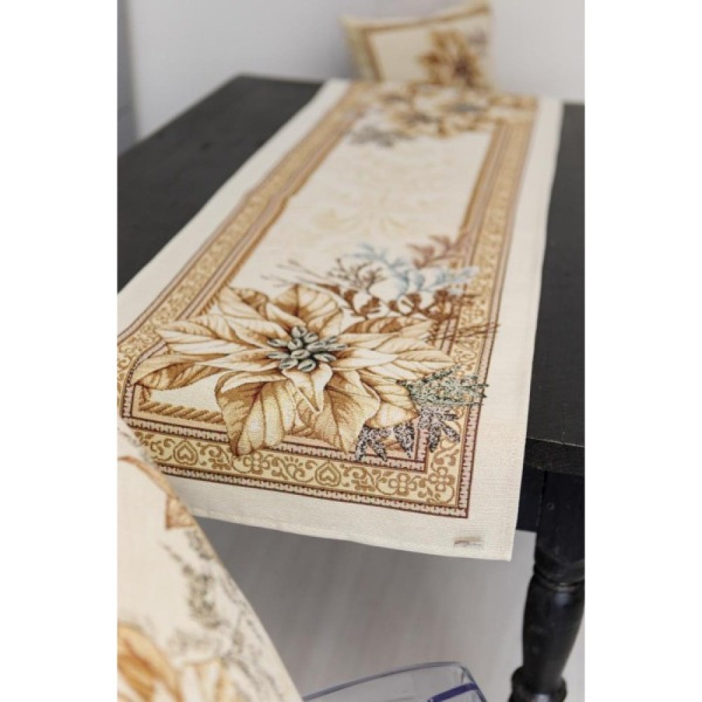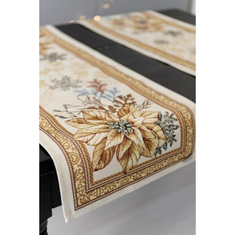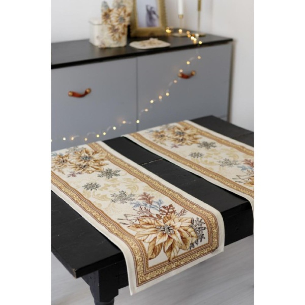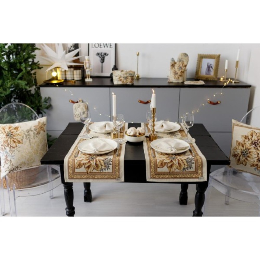 Доріжка на стіл із натуральної іспанської тканини приємна на дотик! Це стильний подарунок сім'ї, друзям, родичам та колегам до чарівних новорічних свят. Також це чудове доповнення до скатертини, серветок, наволочок та подушок з новорічної колекції Золоте свято