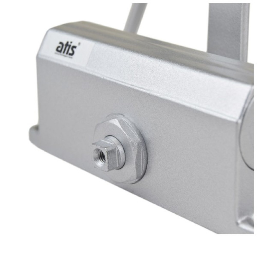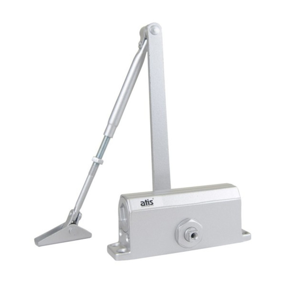 ATIS DC-602 дотягувач верхнього монтажу з важільною передачею. Напівкомерційне використання, напрацювання на відмову 500000 циклів. Зусилля зачинення DIN2 (вага дверей до 45 кг, ширина до 850мм).