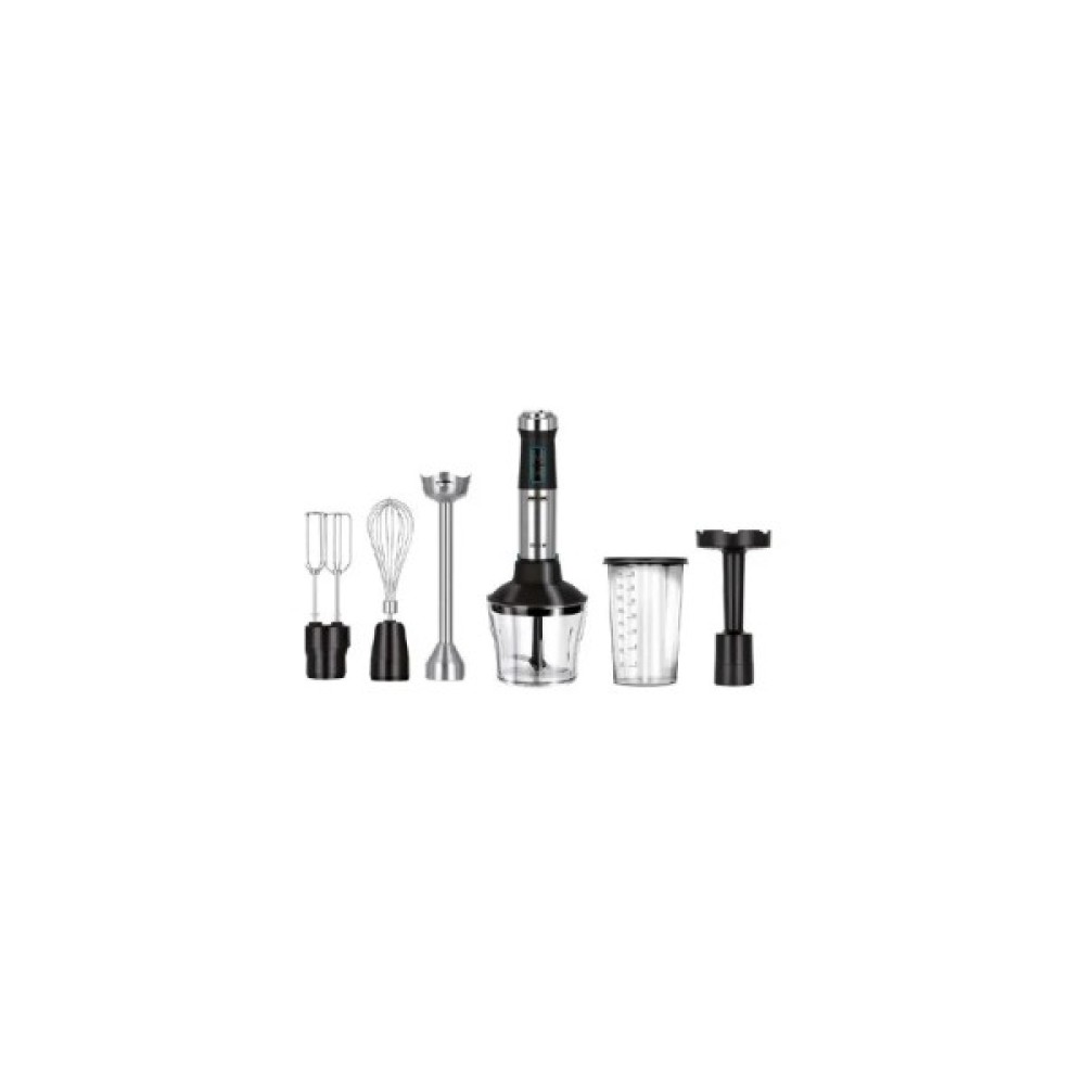 Інтелігентний дизайн блендера об'єднує класичний {чорний колір} з високоякісними матеріалами - {металевим корпусом} та ергономічною ручкою. Це не лише підкреслює стиль вашої кухні, але й гарантує {комфорт} і {надійність} під час кожного використання. Завдяки {плавному регулюванню швидкості} та двом основним швидкостям у поєднанні з {турборежимом}, ви отримуєте повний контроль над процесом приготування, що забезпечує максимальну {ефективність} і {точність}.