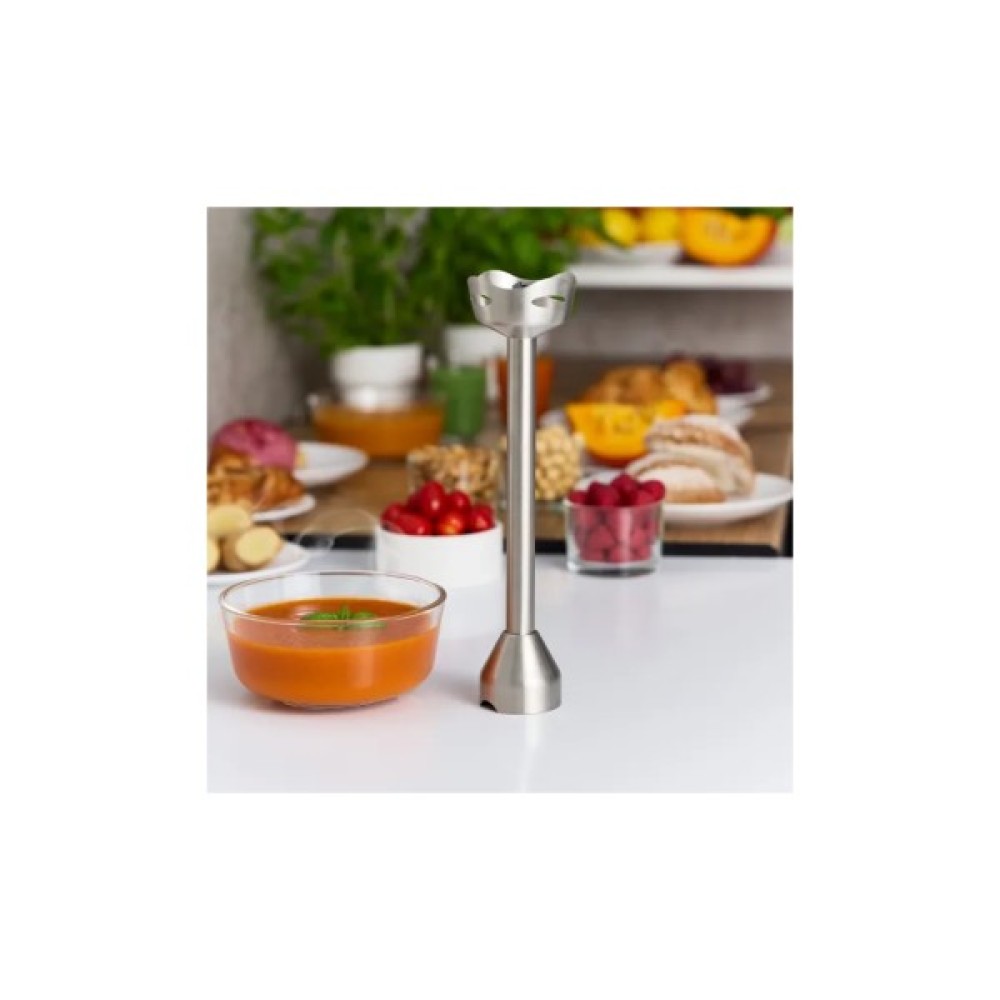 {Подрібнювач} з місткістю 600 мл разом з додатковим {мірним стаканом} об'ємом 0.8 л стане незамінним помічником у подрібненні м’яса, горіхів та іншої продукції великої твердості. Використовуючи блендер, ви заощаджуєте час на приготування завдяки {швидкості} і {точності} кожного процесу.