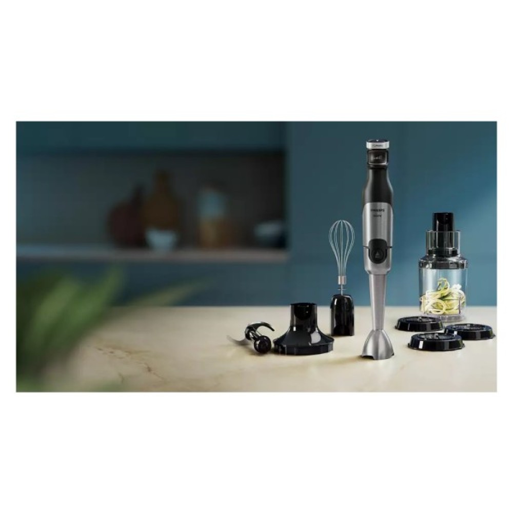 Інтуїтивне управління швидкістю здійснюється з технологією SpeedTouch. Це дає змогу плавно змінювати швидкість простим натисканням кнопки, зберігаючи контроль навіть під час інтенсивної роботи. Подаруйте своїй кухні трохи стилю з LED-підсвічуванням, що надає вишуканого вигляду і підвищує зручність використання.