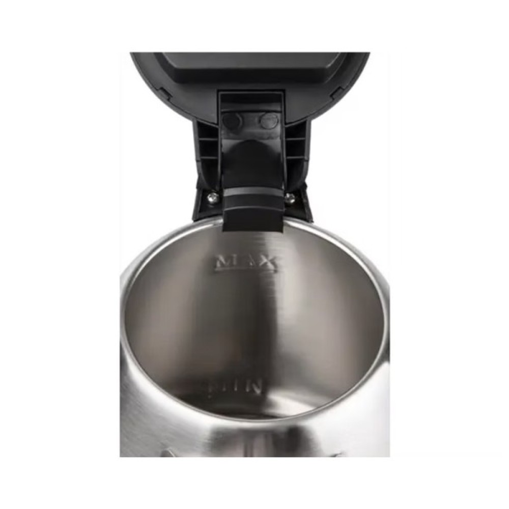 Чайник оснащений прихованим нагрівальним елементом дискового типу, що забезпечує безпечність та підвищує зручність в експлуатації. Такий дизайн мінімізує накопичення накипу, полегшуючи очищення приладу, а внутрішній індикатор рівня води дозволяє без зайвих зусиль контролювати кількість води всередині чайника.