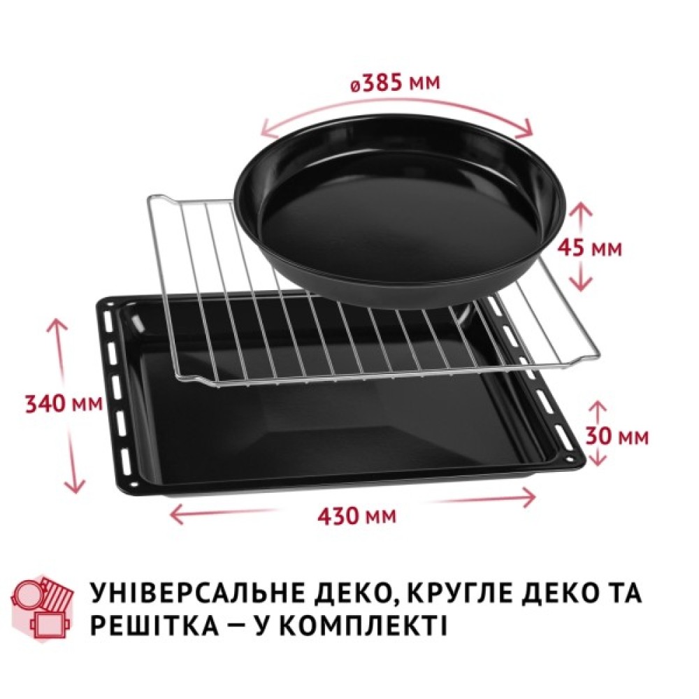 • Статичний нагрів (Верхній + Нижній нагрів) забезпечує ретельніше пропікання страви з обох сторін.