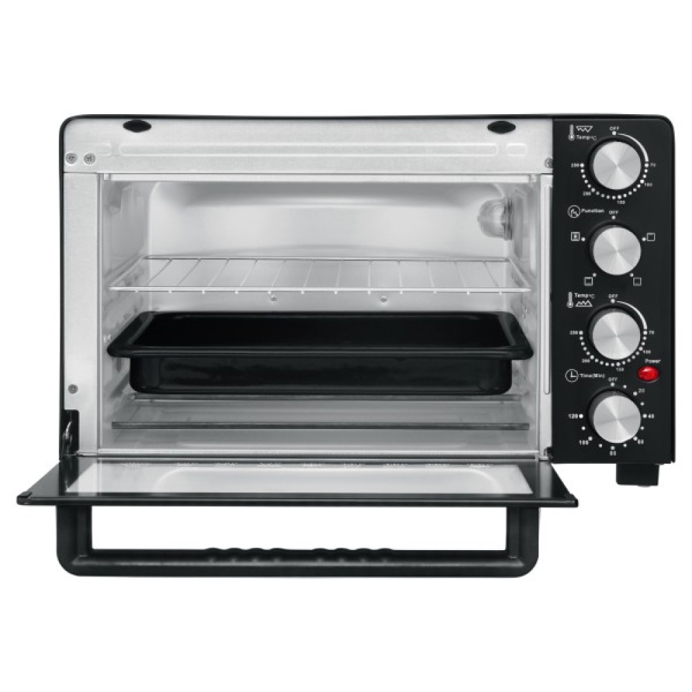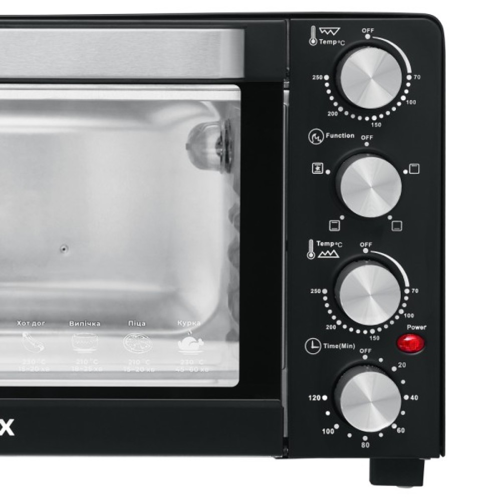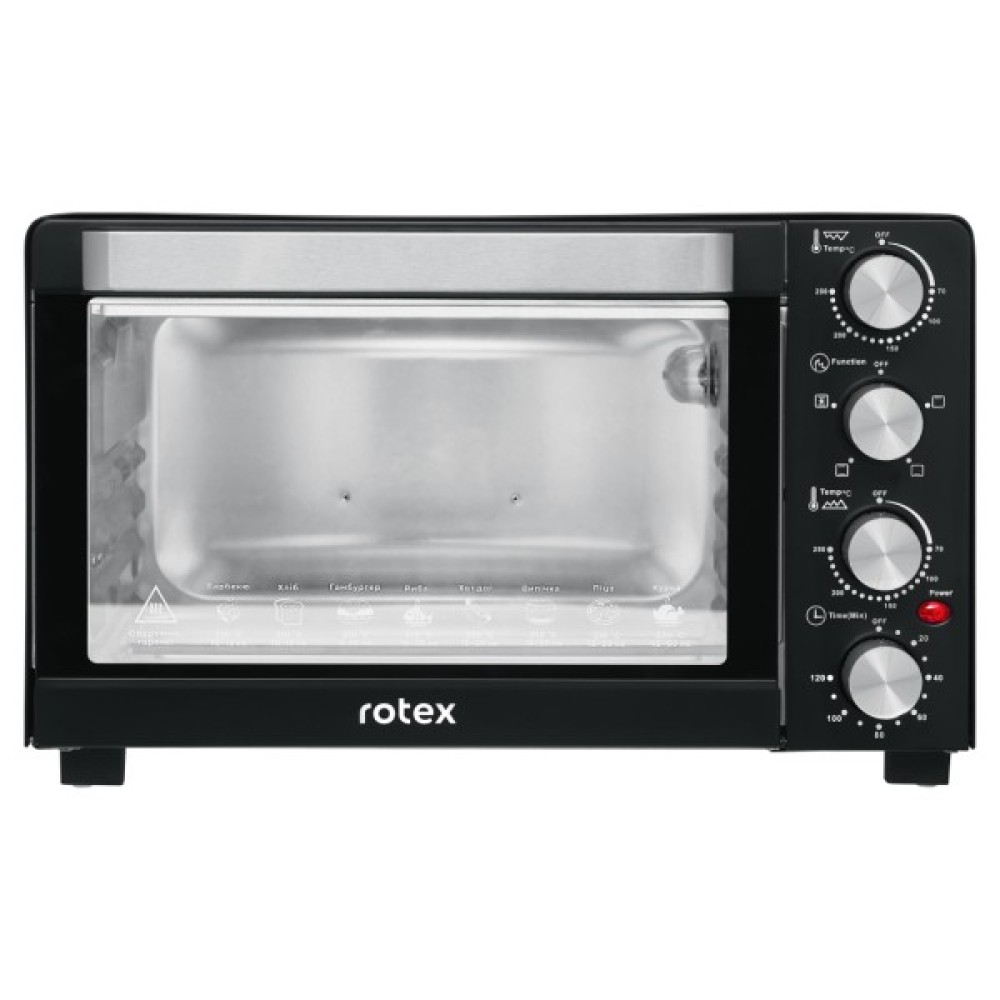 Внутрішній об'єм настільної духової шафи Rotex ROT350-B 35 л дозволять пекти торти та іншу випічку будь-якої складності. Також ці параметри достатні для запікання птиці, навіть у рамках підготовки до великих сімейних свят. Різні режими роботи дозволяють вибирати між верхнім і нижнім нагріванням або використовувати їх комбінацію. Режим конвекції, що включається за бажанням, гарантує апетитну золотисту скоринку на будь-яких видах страв. Регулювання температури від мінімальних 70 до максимальних 250 градусів дає можливість з однаковою легкістю швидко запікати м'ясо або сушити вимогливі пастилу і безе. Таймер дозволить задати необхідний час приготування та подасть сигнал, коли процес буде завершено.