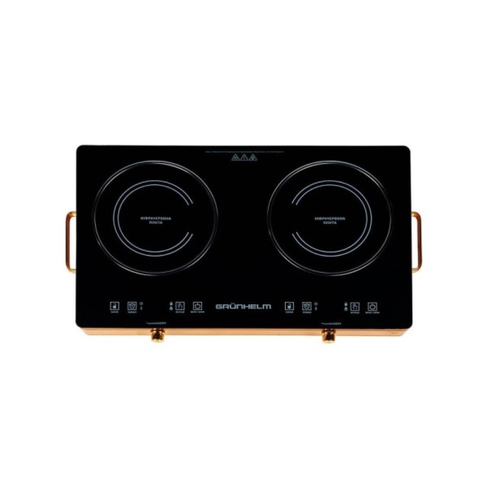 Плита інфрачервона зі склокерамічною панеллю для швидкого розігріву, приготування різноманітних страв. 2 конфорки, сенсорне керування, 2 РК дисплеї, що, безумовно, зручно в ході роботи.
