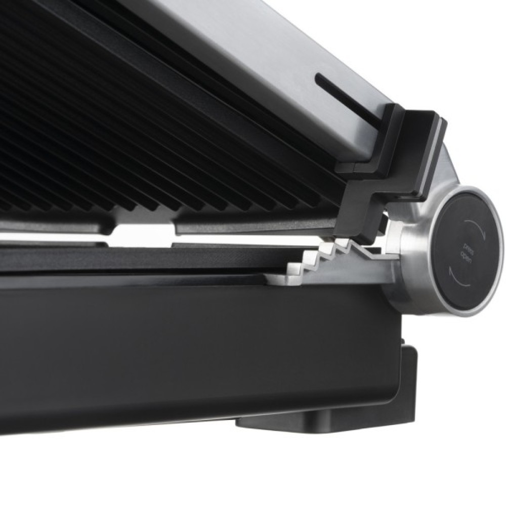 відсік для шнура; ручка, що не нагрівається; нековзні ніжки; знімні пластини; вибір ступенів прожарювання та регулювання температури; автоматичне визначення товщини їжі; ручний режим; можливість приготування у відкритому положенні на 2-х аркушах одночасно з окремим налаштуванням температури для кожної пластини; приготування без додавання олії