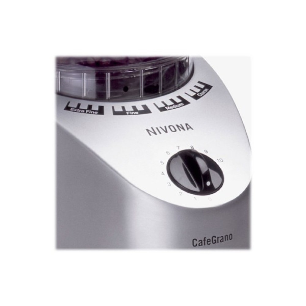 Для кожного способу приготування кави та під будь-який сорт зерен добирають відповідну дрібність помелу. Ви зможете встановити необхідний рівень завдяки обертанню контейнера. Шкала має 16 поділок, плавне регулювання дає змогу встановити ступінь помелу від найдрібнішого (extra fine) до великого (coarse). Якщо ви маєте кавницю Nivona 130 CafeGrano, ви можете подрібнити каву прямо в ріжок.