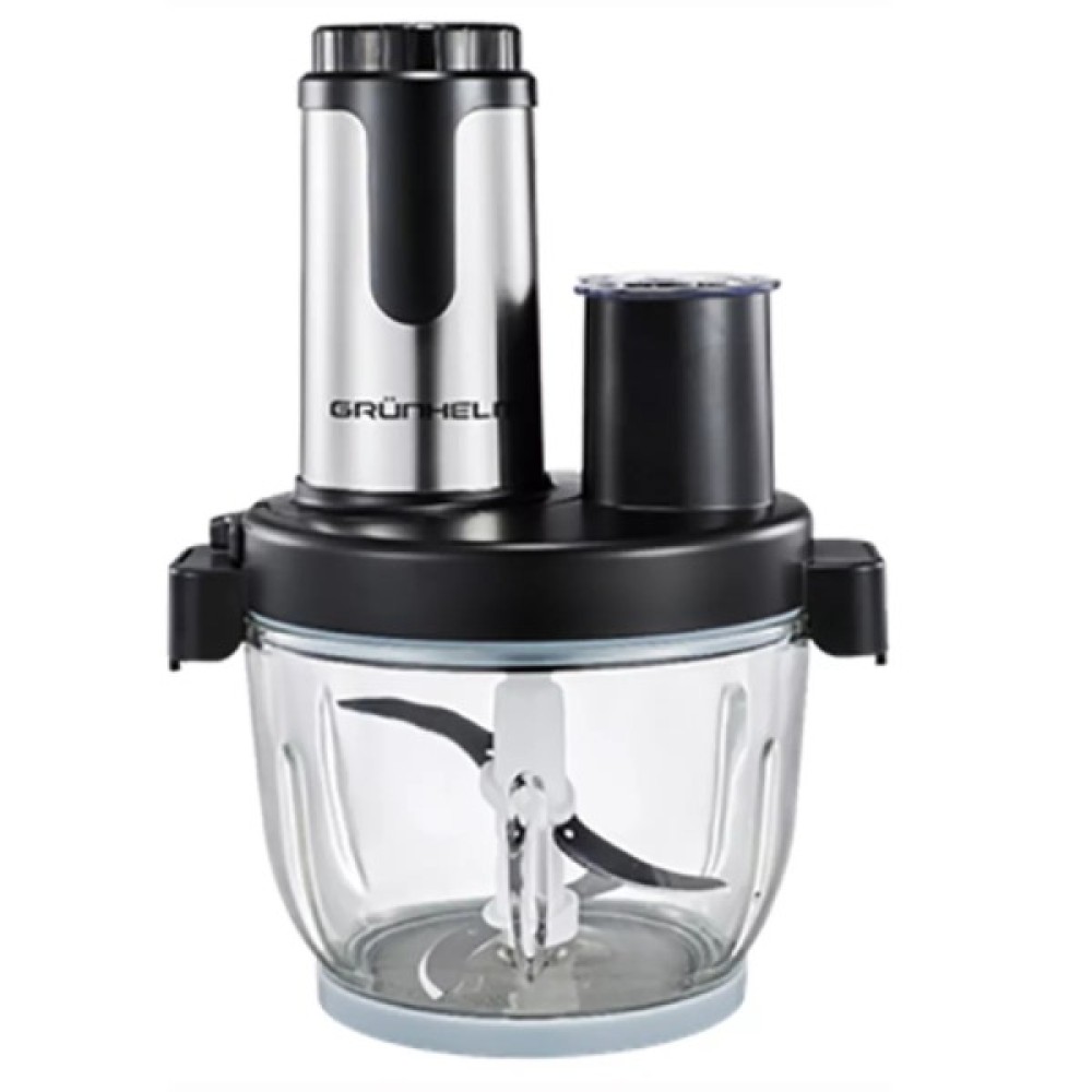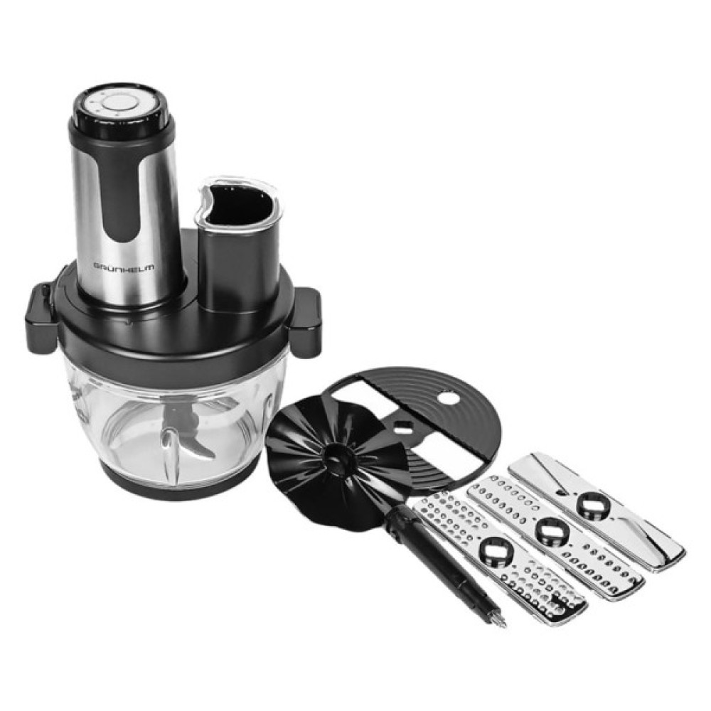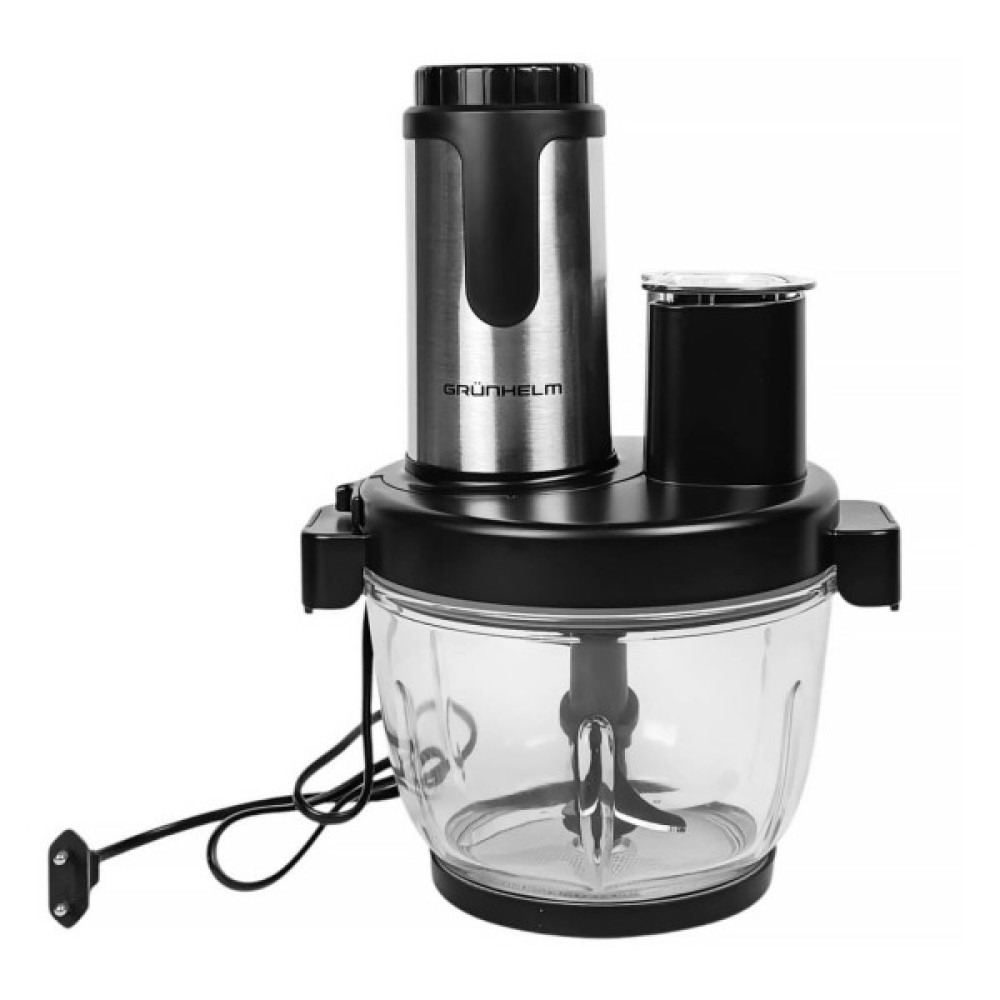 - Призначений для збивання, змішування, помелу, шатківниці, перетирання., все це можливо завдяки набору з 5 насадок, що входить до комплекту.