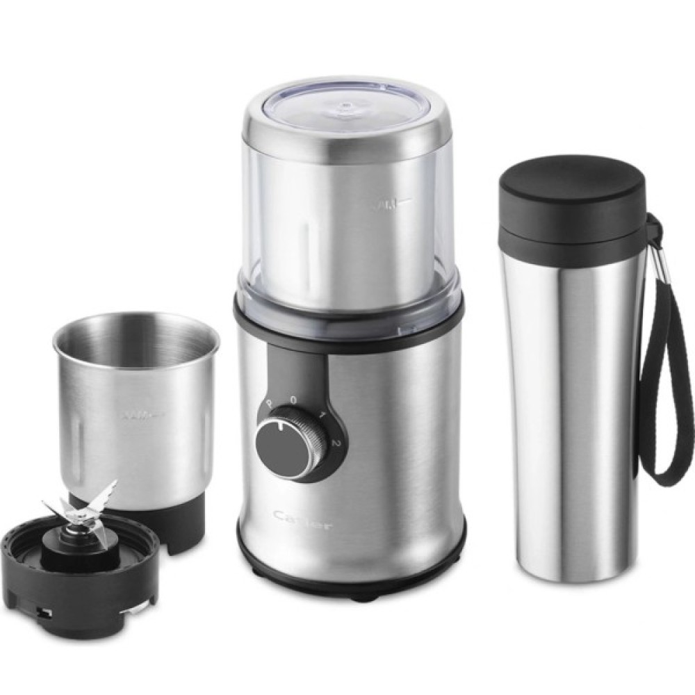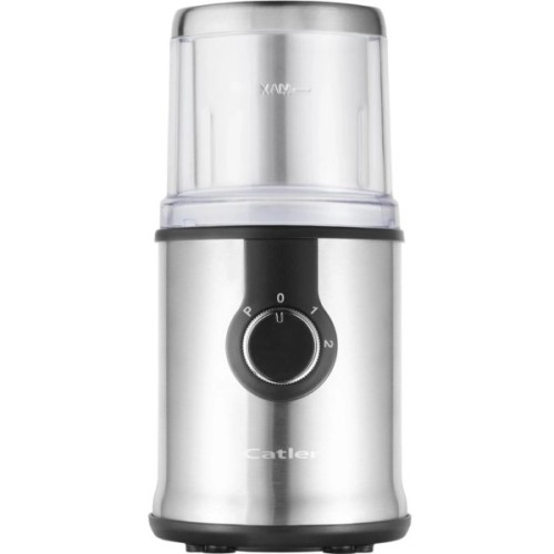 Подрібнювач Catler FC810 — це багатофункціональний настільний млинок для побутового використання, який поєднує стильний дизайн і високу ефективність. Його корпус виготовлений із нержавіючої сталі, що гарантує довговічність та стійкість до зношування. Пристрій оснащений двома швидкостями роботи та режимом Puls, який дозволяє миттєво підвищити потужність для інтенсивного подрібнення твердих продуктів. Завдяки потужності 350 Вт подрібнювач легко справляється з кавовими зернами, маком, спеціями, а також підходить для приготування дитячого харчування, smoothie та дроблення льоду.