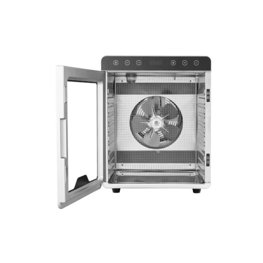 Сучасна конвективна система сушіння рівномірно розподіляє тепло завдяки вентилятору, розташованому ззаду, а температурний діапазон від 35 до 85 °C дозволяє підібрати оптимальні умови для різних продуктів.