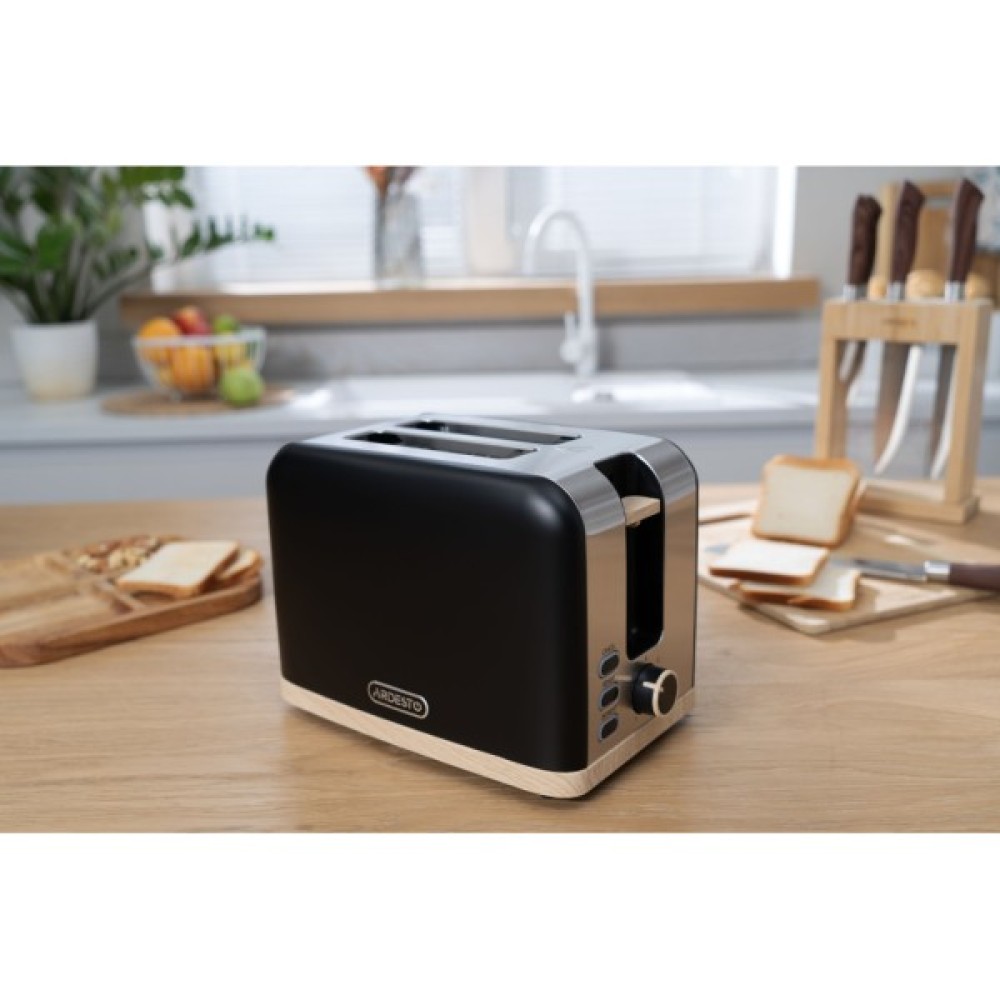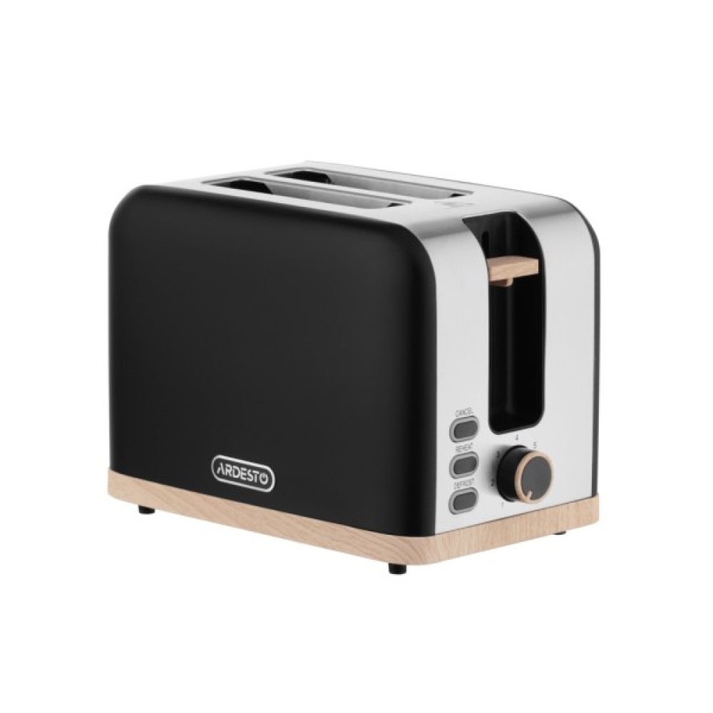Тостер Ardesto потужністю 800–930 Вт надає змогу приготувати два тости одночасно. Широкі слоти з автоматичним центруванням гарантують рівномірне обсмажування скибок будь-якої товщини. До того ж передбачено регулювання ступеню смаження (7 рівнів). Функції підігрівання і розморожування додають зручності, адже можна швидко розморозити та підігріти смаколики прямо з морозильної камери.