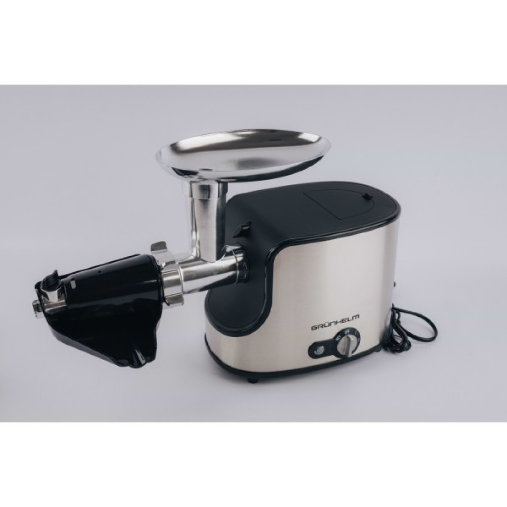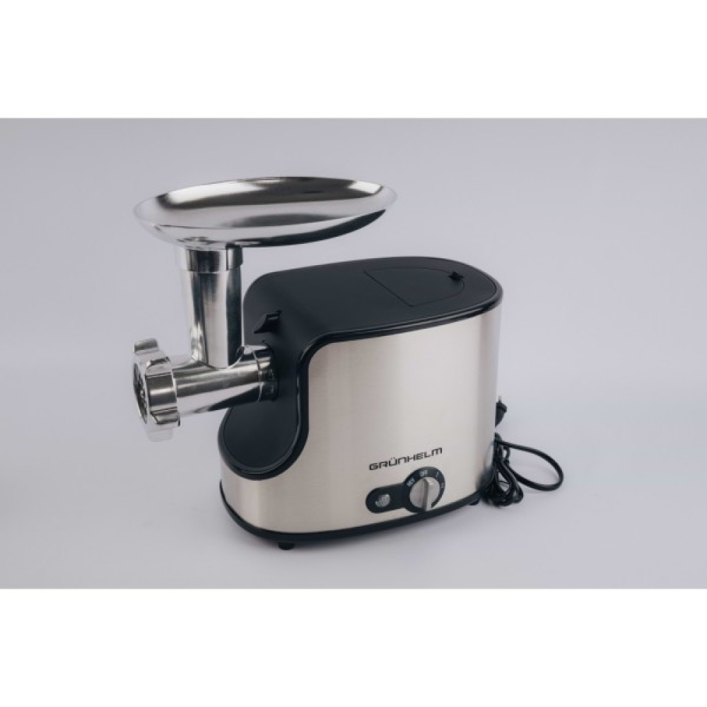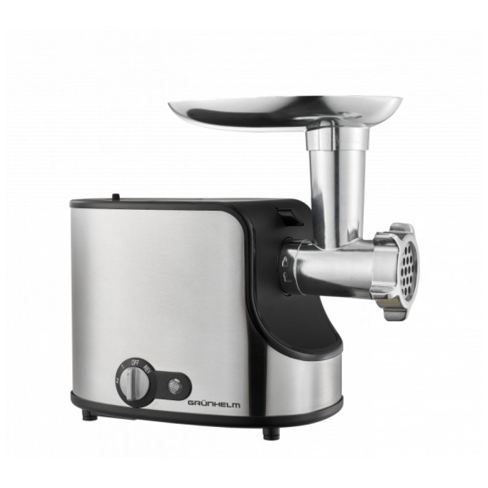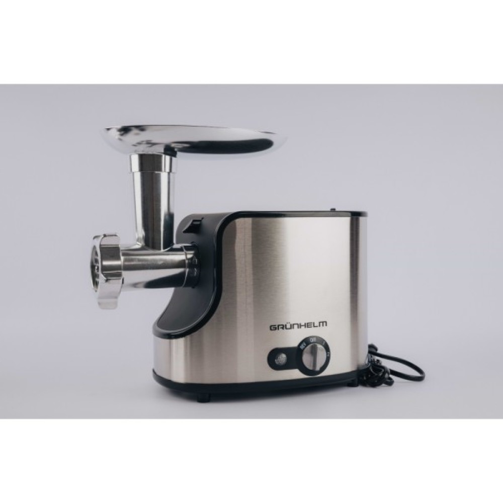 Електрична м'ясорубка Grunhelm оснащена функцією зворотного ходу (реверса), яка провертає шнек пристрою у зворотний бік і допомагає витягти застрягле м'ясо і намотані жили. Таким чином можна переробити навіть найжорсткіше м'ясо.