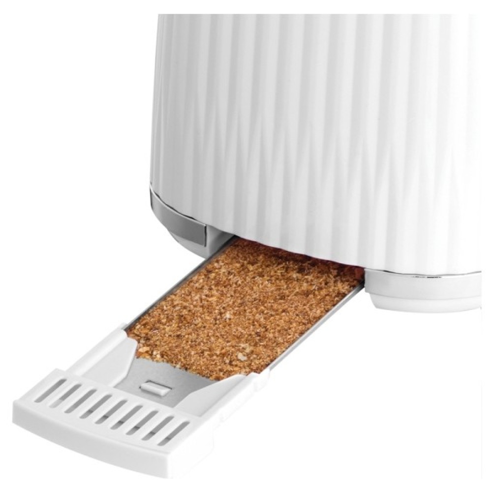 Тостер від Russell Hobbs створений для того, щоб виділятися на кухні, ідеально підсмажуючи найхрусткіші скибочки хліба. Ваш день може розпочатися дійсно приємно. Надзвичайна текстурована поверхня вигідно вирізнятиметься на будь-якому кухонному столі. Шість рівнів підсмажування, решітка для тостів, функції розморожування, підігріву та паузи - все, що потрібно, щоб підсмажити шматочок хліба саме так, як ви любите. А функція високого підйому тіста дозволяє легко вийняти підсмажений шматочок або бублик з відділення для гарячого.