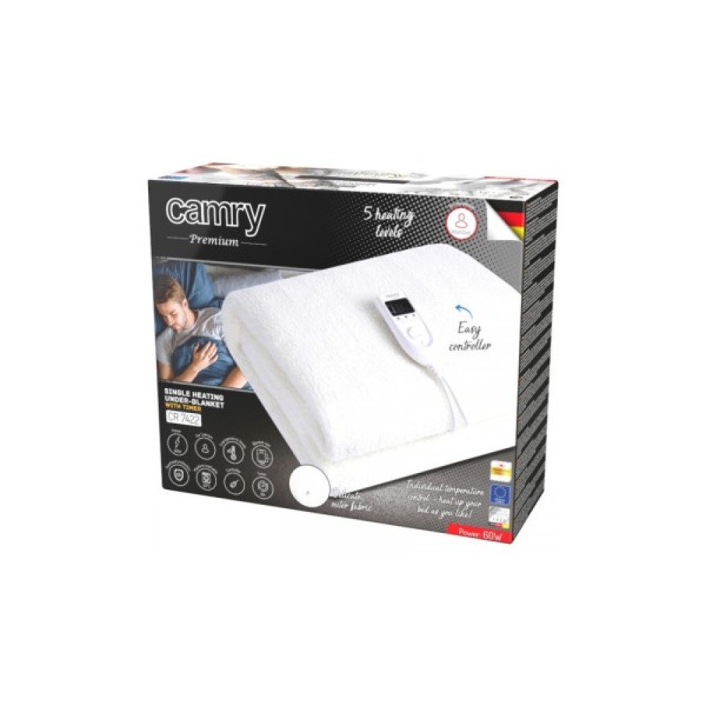 Camry CR 7422 покращує кровообіг та розслабляє м’язи, тому сприяє спокійному та глибокому сну та швидкому відновленню сил. Електропростирадло також рекомендовано використовувати для полегшення симптомів артриту та ревматизму.