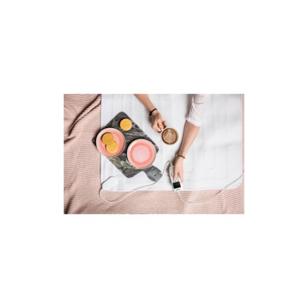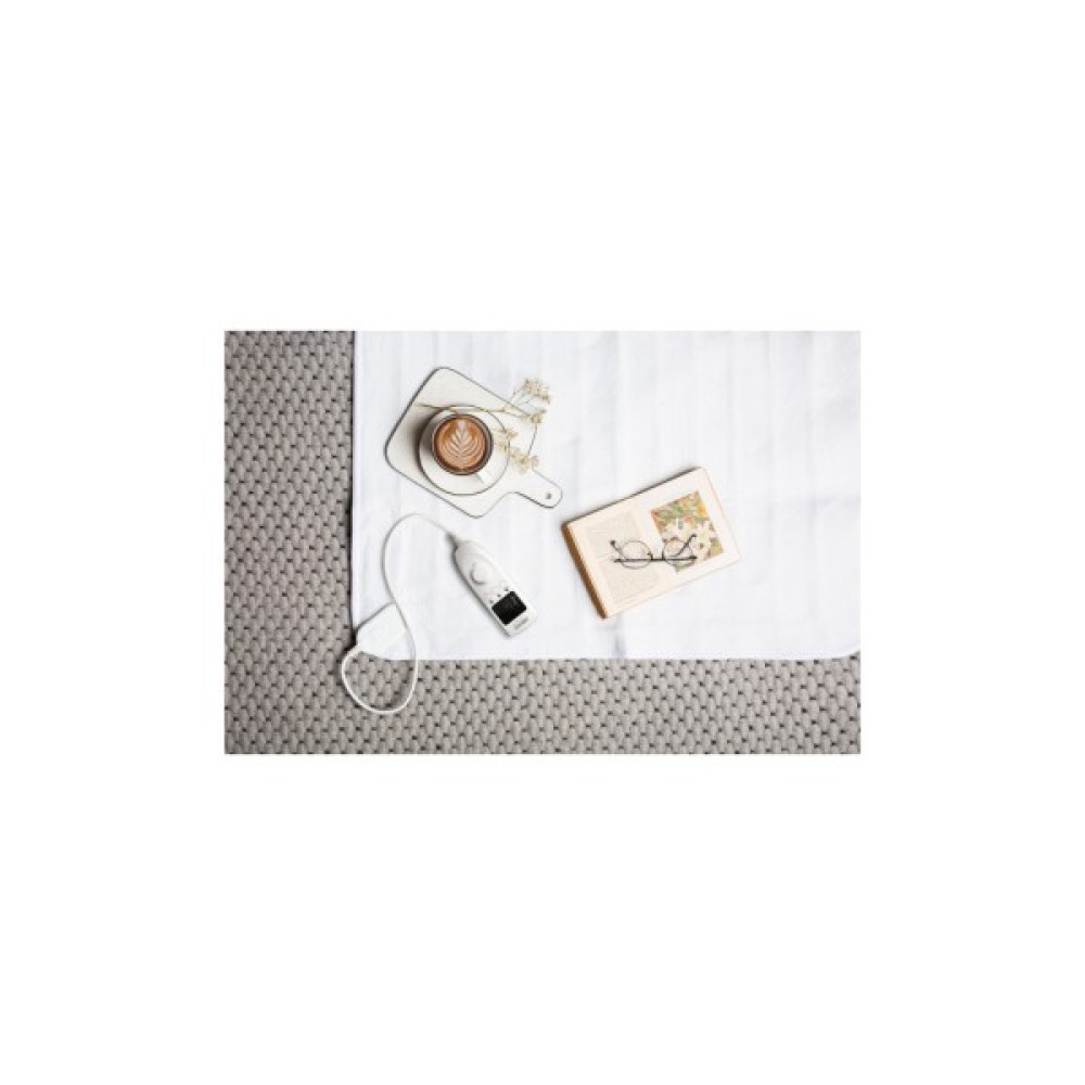 Його м’яка, приємна на дотик тканина забезпечує приємні тактильні відчуття, а нековзка основа запобігатиме ковзанню по поверхні матраца. Електропростирадло просте у догляді та підтримує в пральній машині за температури 30°C.