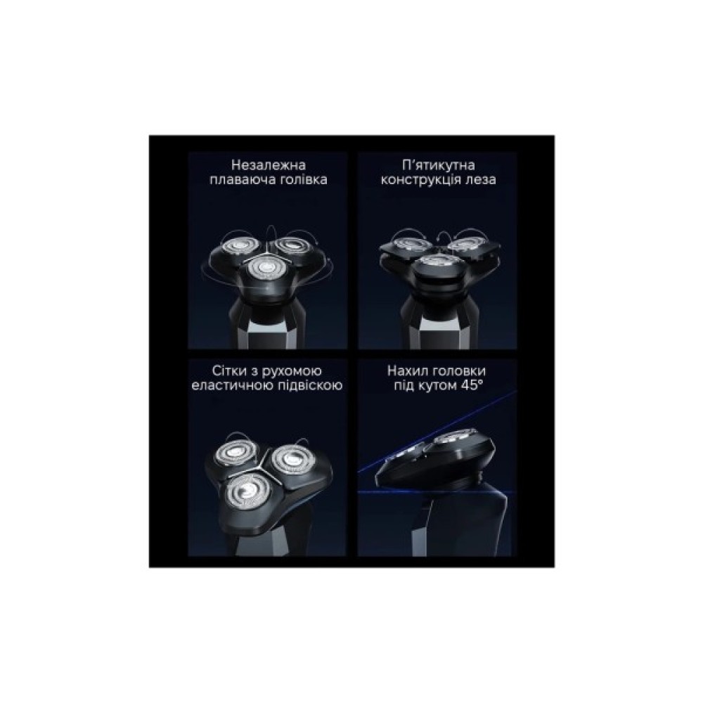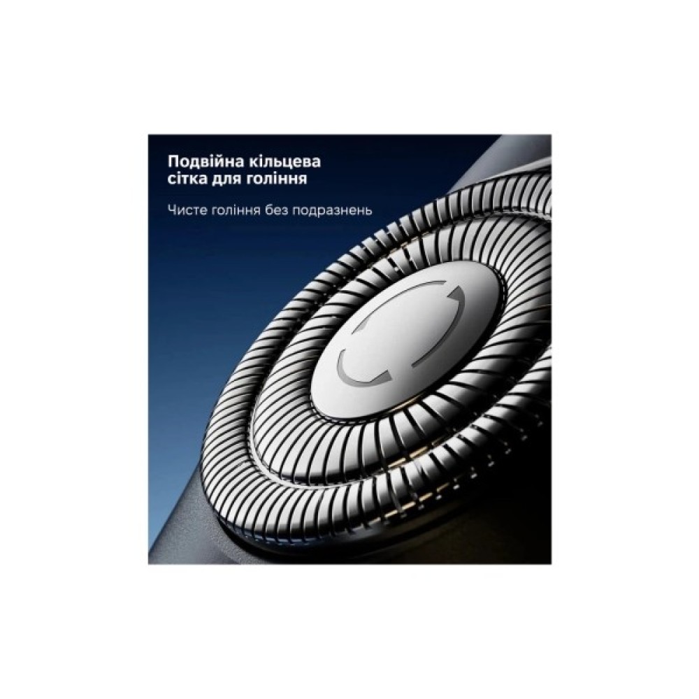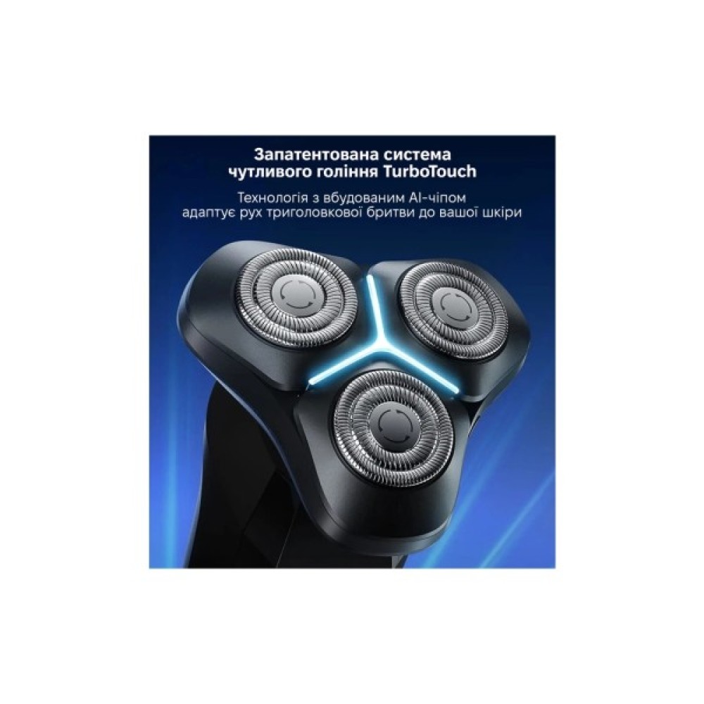 Оснащення водонепроникний корпус; плавуча система гоління; швидке зарядження; попередження про необхідність очищення; очищення під струменем води; підсвічування дисплея