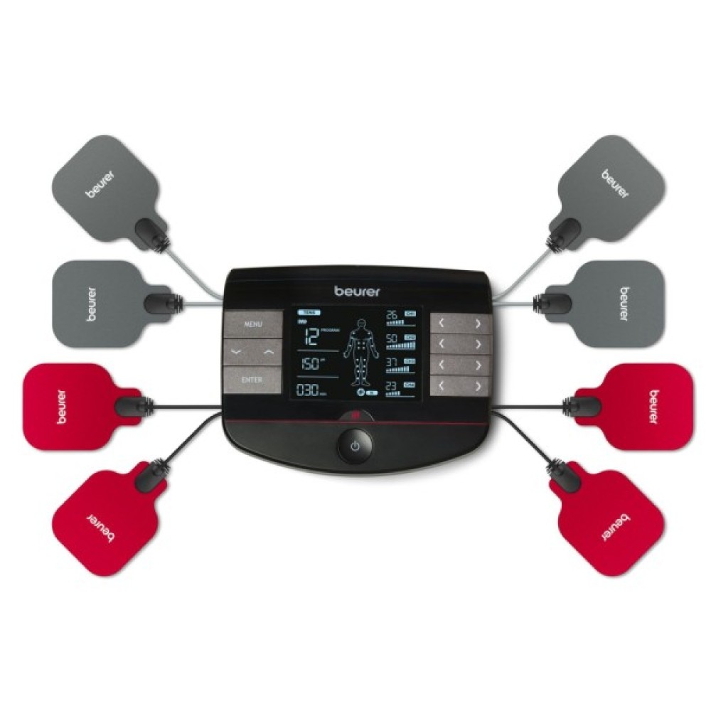 Цифровий міостимулятор TENS/EMS з функцією нагріву та великою площею застосування. Поєднує стимуляцію нервів (TENS) та м’язів (EMS) для комплексного знеболювання та тренування м’язів. 64 програми для ефективного зняття болю та тренування. Два рівні нагріву: низький та високий. Чотири канали з індивідуальним налаштуванням інтенсивності. Вісім електродів для точного розміщення. Заспокійливий масаж і тепловий ефект. Інтуїтивне управління та легке налаштування