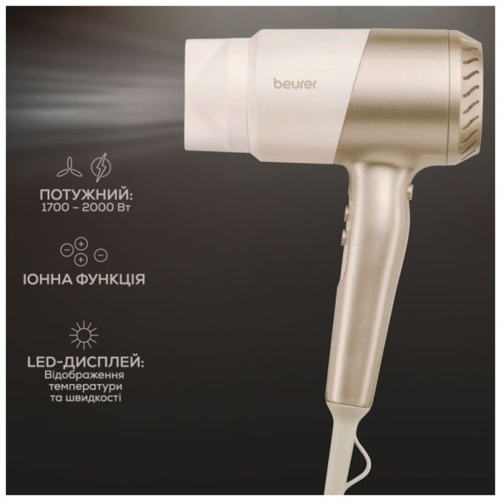 Фен Beurer HC 40 — це поєднання німецької якості та витонченого дизайну, які зроблять ваш догляд за волоссям максимально комфортним та ефективним. З потужністю у 2000 Вт, цей побутовий фен дозволяє швидко висушити волосся, гарантуючи при цьому дбайливе ставлення до кожного пасма. Завдяки легкій вазі в 0.65 кг та ергономічній формі, Beurer HC 40 зручно тримати в руці, що робить процес укладання ще приємнішим.
