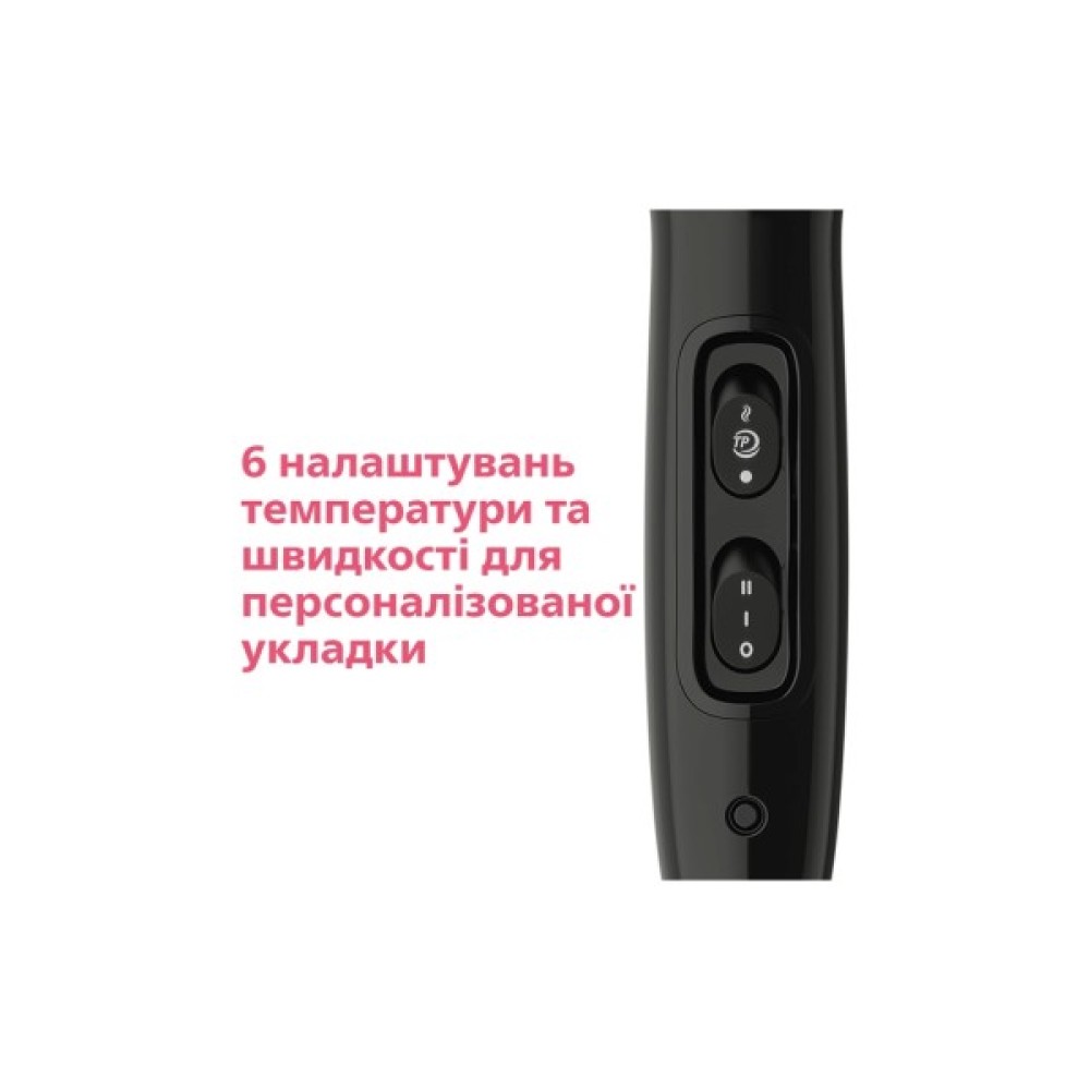 Легкий (усього 0,73 кг) та сучасний чорний дизайн гармонічно впишеться в будь-який інтер’єр. Комплект включає в себе концентратор та дифузор, що розширюють ваші можливості у створенні різноманітних укладок, від гладких до об'ємних.
