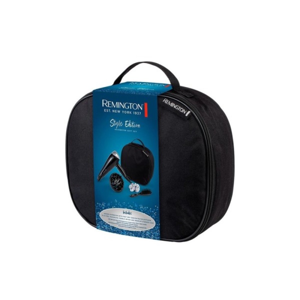 Фен постачається зі стильним кейсом для зручного зберігання та транспортування, що робить його ідеальним супутником для подорожей. У комплект також входять практичні аксесуари, такі як гребінець та гумка, що дозволяють створювати і підтримувати бездоганну зачіску. Обираючи Remington D3171GP, ви обираєте якість, стиль та багатофункціональність, що перевищують очікування.
