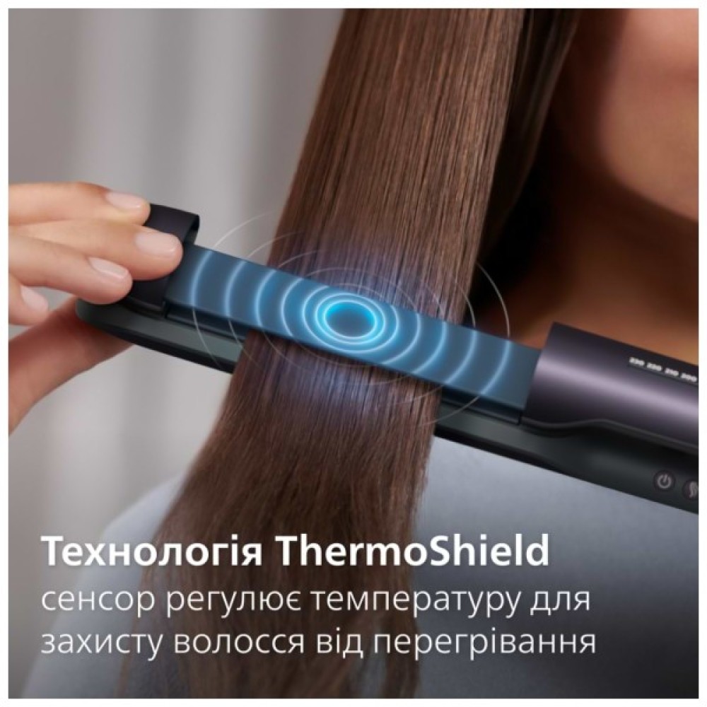 Технологія ThermoShield забезпечує укладання з мінімальним ушкодженням волосся від перегріву. Її датчик регулює температуру, щоб ви могли оцінити ідеальне укладання від коріння до кінчиків.