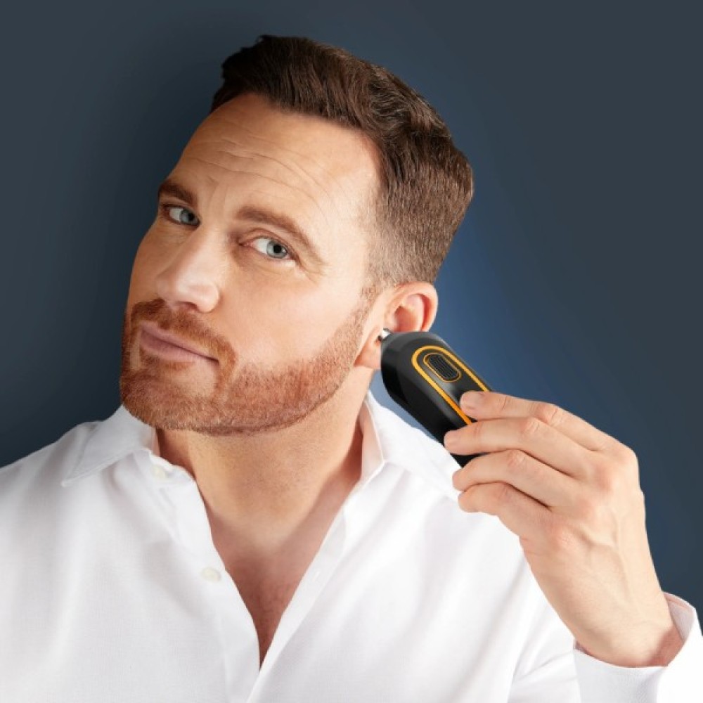 Система лез, що обертаються, ефективно й безболісно підстригає небажане волосся у вухах та в носі.