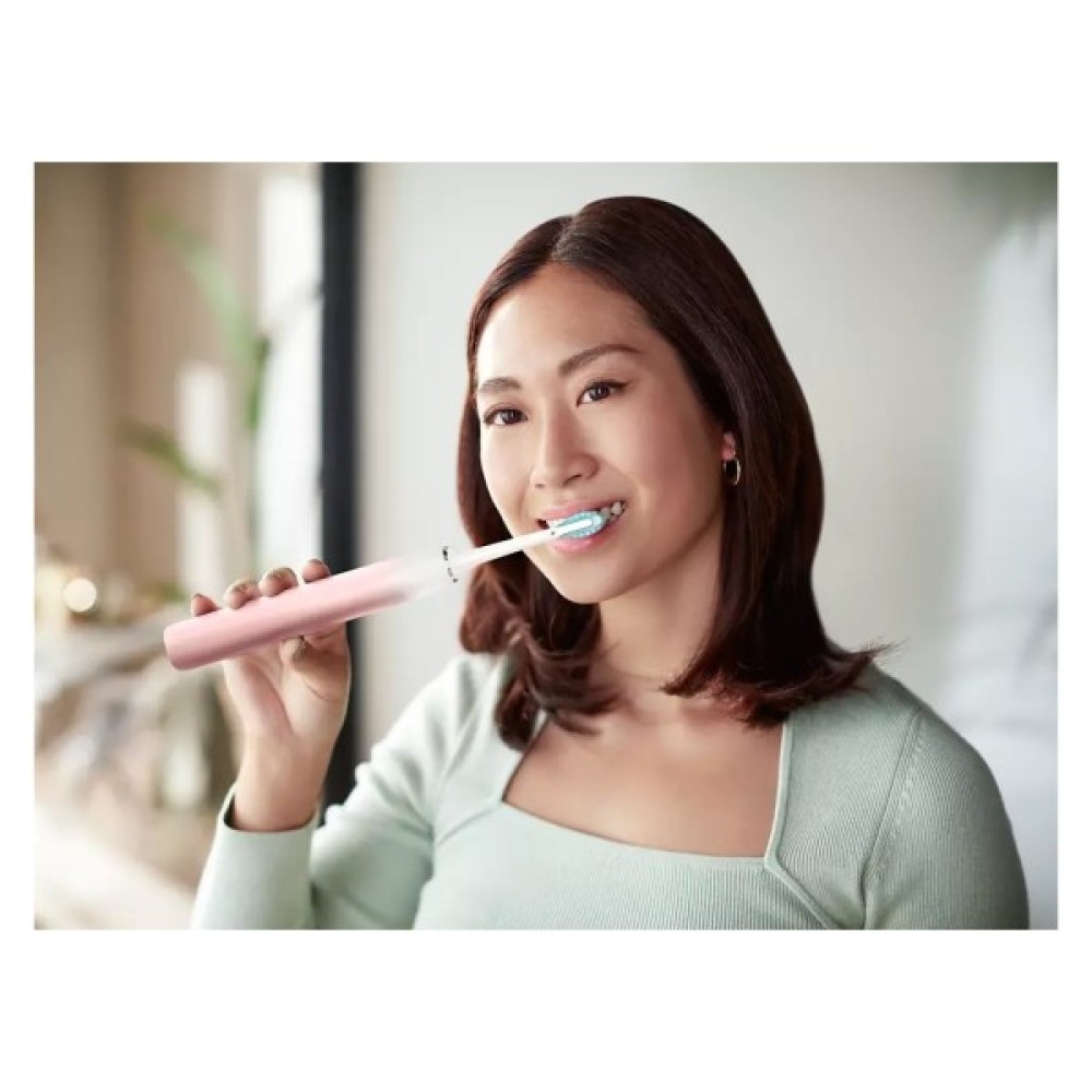 Завдяки звуковій технології ефективні вимітаючі рухи— 62 000 за хвилину — створюють бульбашки, які усувають наліт між зубами та вздовж лінії ясен. До 10 разів ефективніше видалення нальоту порівняно зі звичайною ручною зубною щіткою.