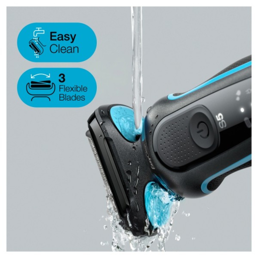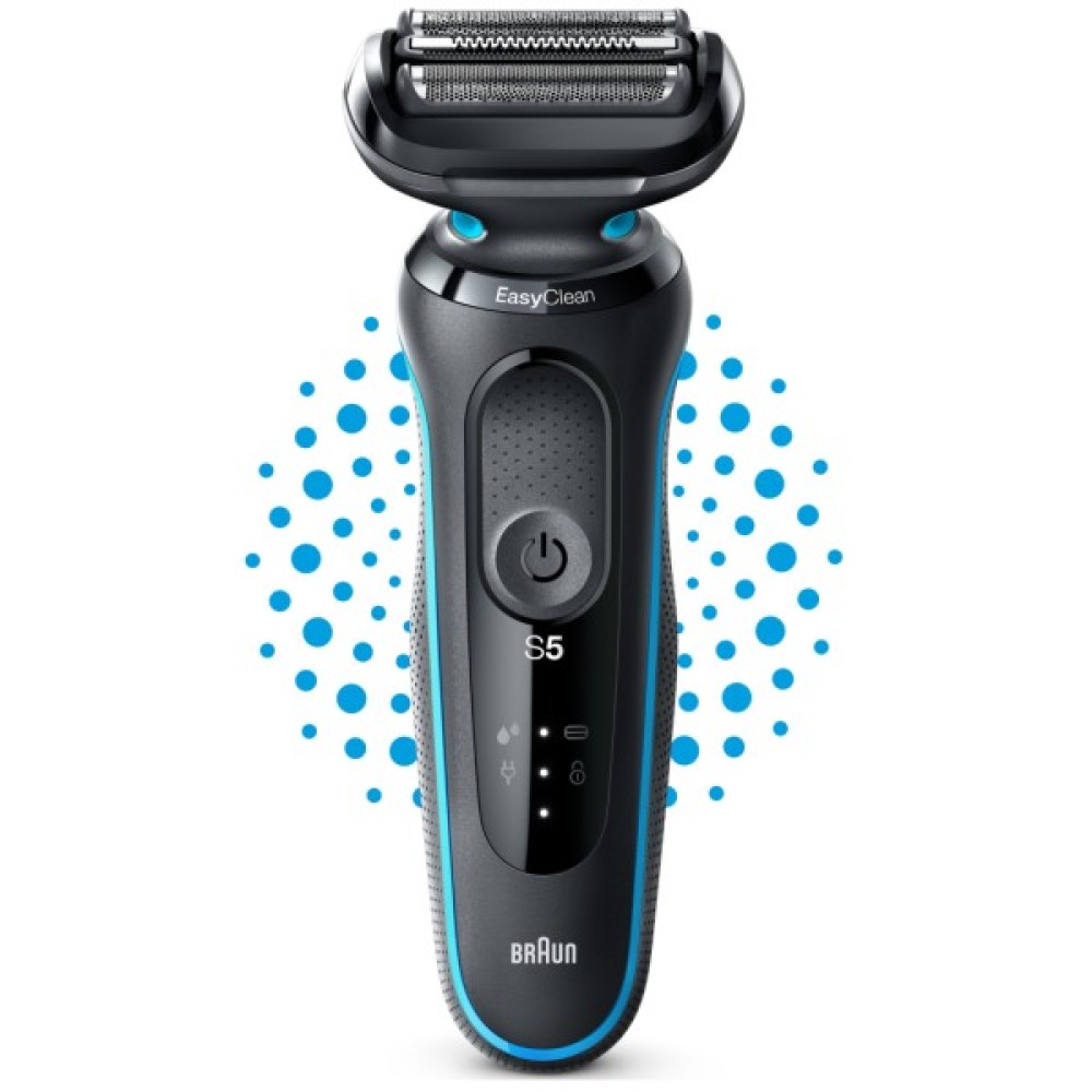 Braun Series 5 51-M1000s BLACK/MINT - гладке гоління стало простіше: 3 гнучкі леза цієї електробритви плавно повторюють контури вашого обличчя, а система EasyClean дозволяє швидко і легко чистити, не знімаючи головки для гоління. Ефективний навіть при жорсткій щетині: технологія AutoSense аналізує щетину та регулює потужність залежно від її густоти, захоплюючи та підрівнюючи більше волосся при кожному голінні.