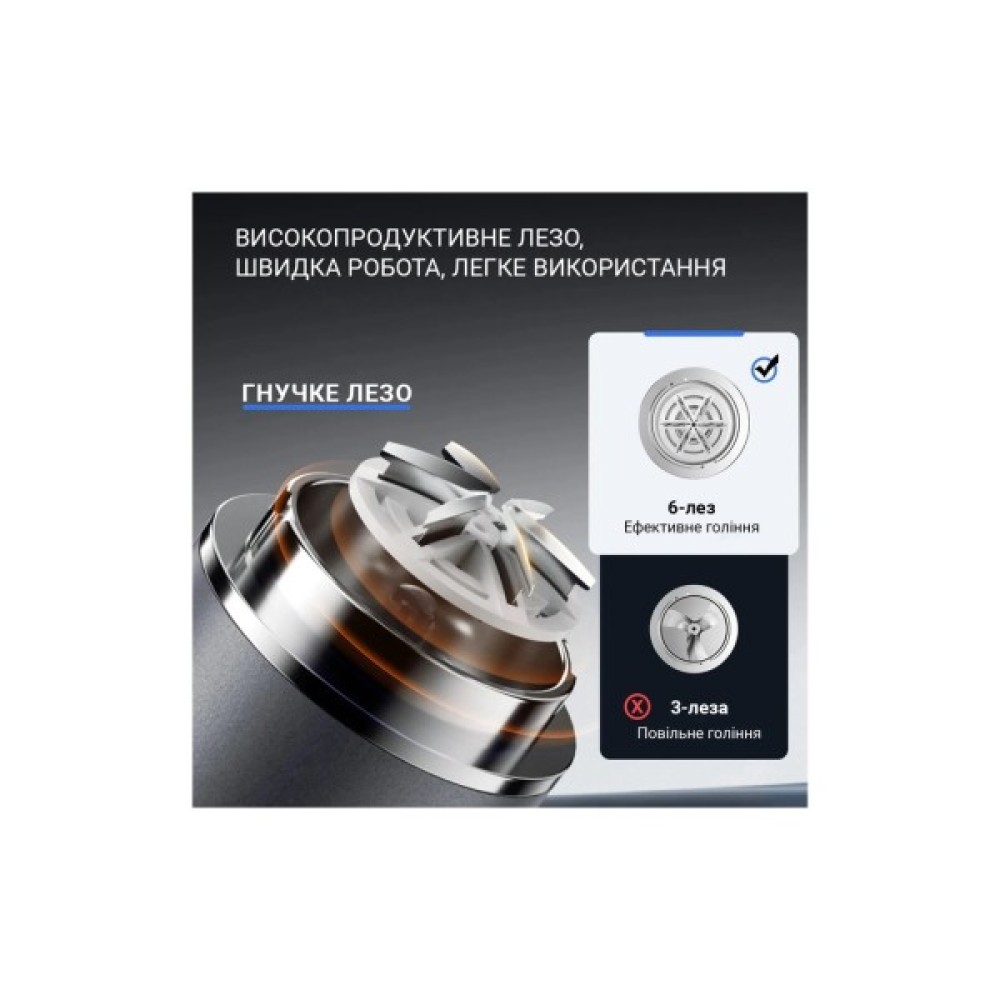 З унікальним металевим стилем, ця електробритва привертає увагу не лише своєю ефективністю, а й елегантним дизайном. Завдяки 6 лезам, вона здатна ефективно зрізати кожну волосинку зі швидкістю до 36000 обертів за хвилину, забезпечуючи вам чисте та гладке гоління щоразу.